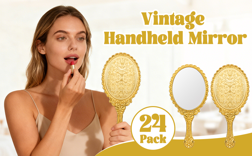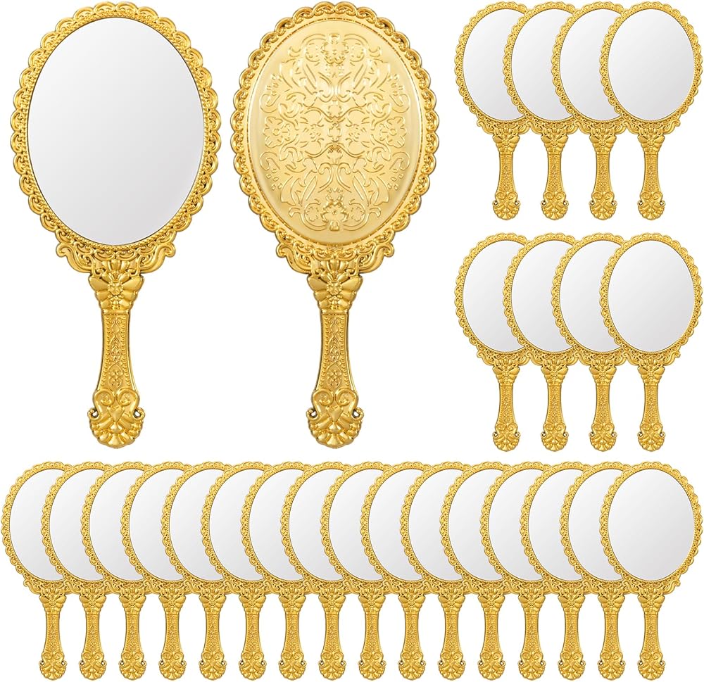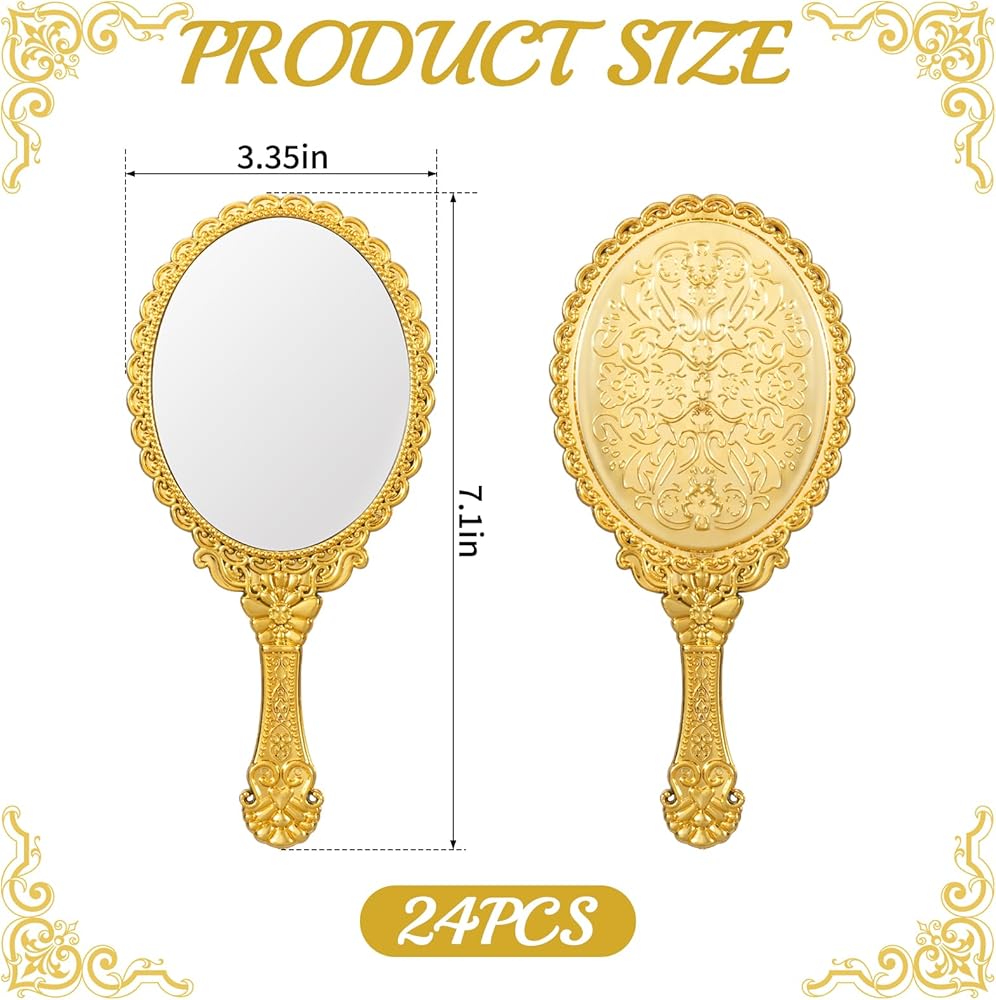Vintage Elegance: Set of 24 vintage handheld mirrors embossed with delicate floral patterns. Their graceful princess-style design brings timeless charm to your vanity table and adds a touch of luxury to everyday beauty routines