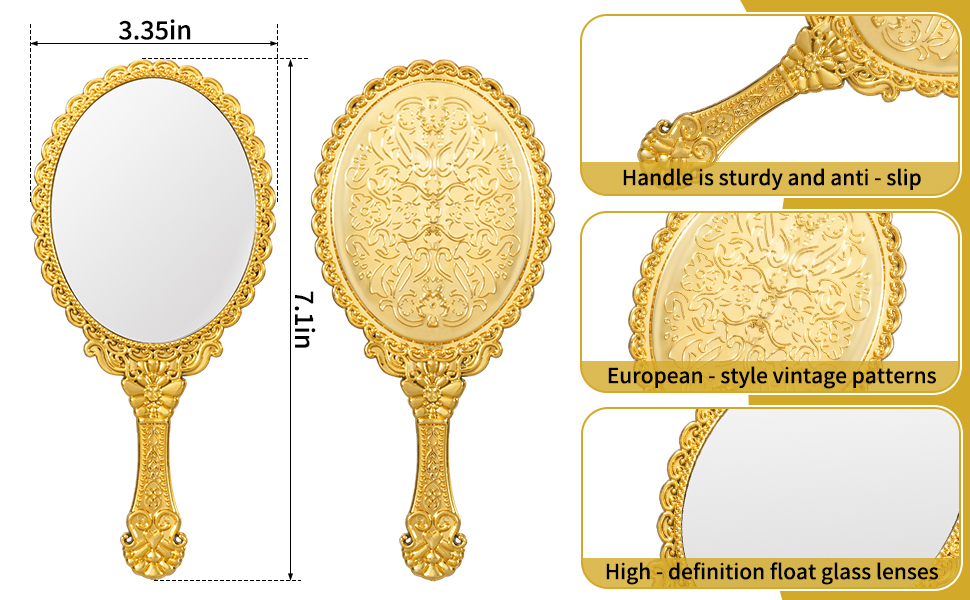 Ideal Gift Choice: Available in elegant gold, these antique make up mirrors are perfect as party favors, bridal shower gifts, classroom rewards, or travel companions. Share them with friends, sisters, or students to spread beauty and joy