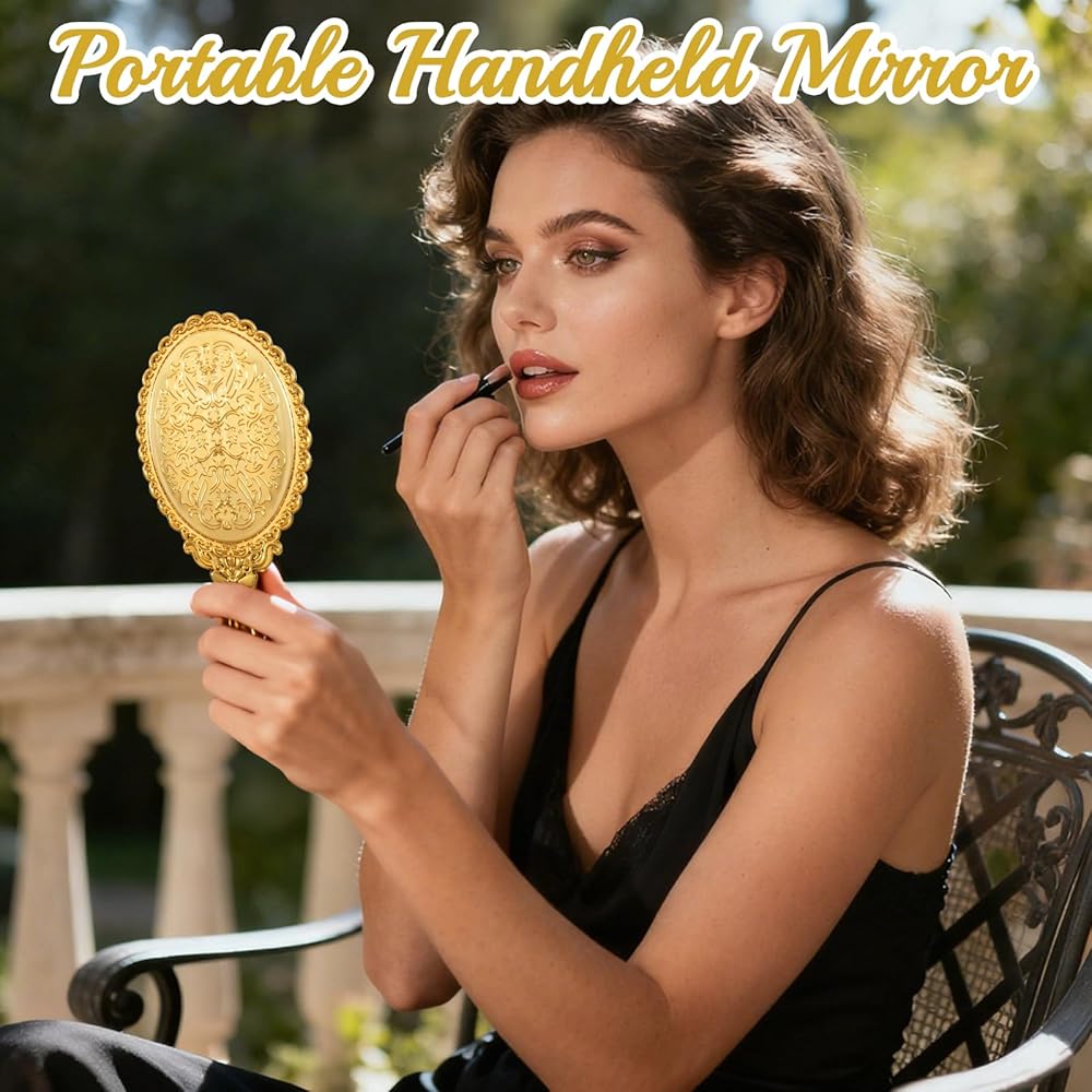 Crystal-Clear Reflection: Our hand held mirror features a smooth, high-definition mirror surface that delivers accurate reflections. Ideal for flawless makeup application, detailed skincare, or hairstyling, the small golden mirror can ensure you look polished wherever you are