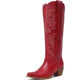 - Classic Western Style:Timeless pointed-toe design with classic Western embroidery and a low stacked angled heel for an authentic cowgirl look