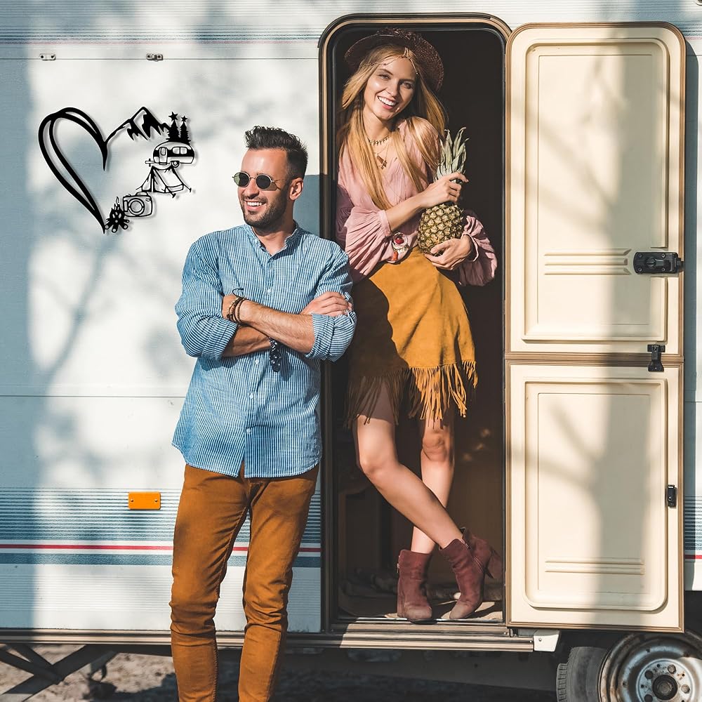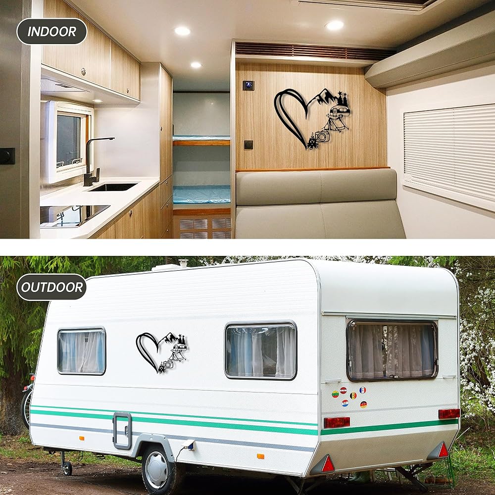 【Built for Lasting Journeys】Forged from rugged 1mm iron with matte-black waterproof finish, this camping decor for camper withstands elements. Pre-drilled holes enable instant display as striking rv decorations for inside camper or enduring outdoor camping signs.