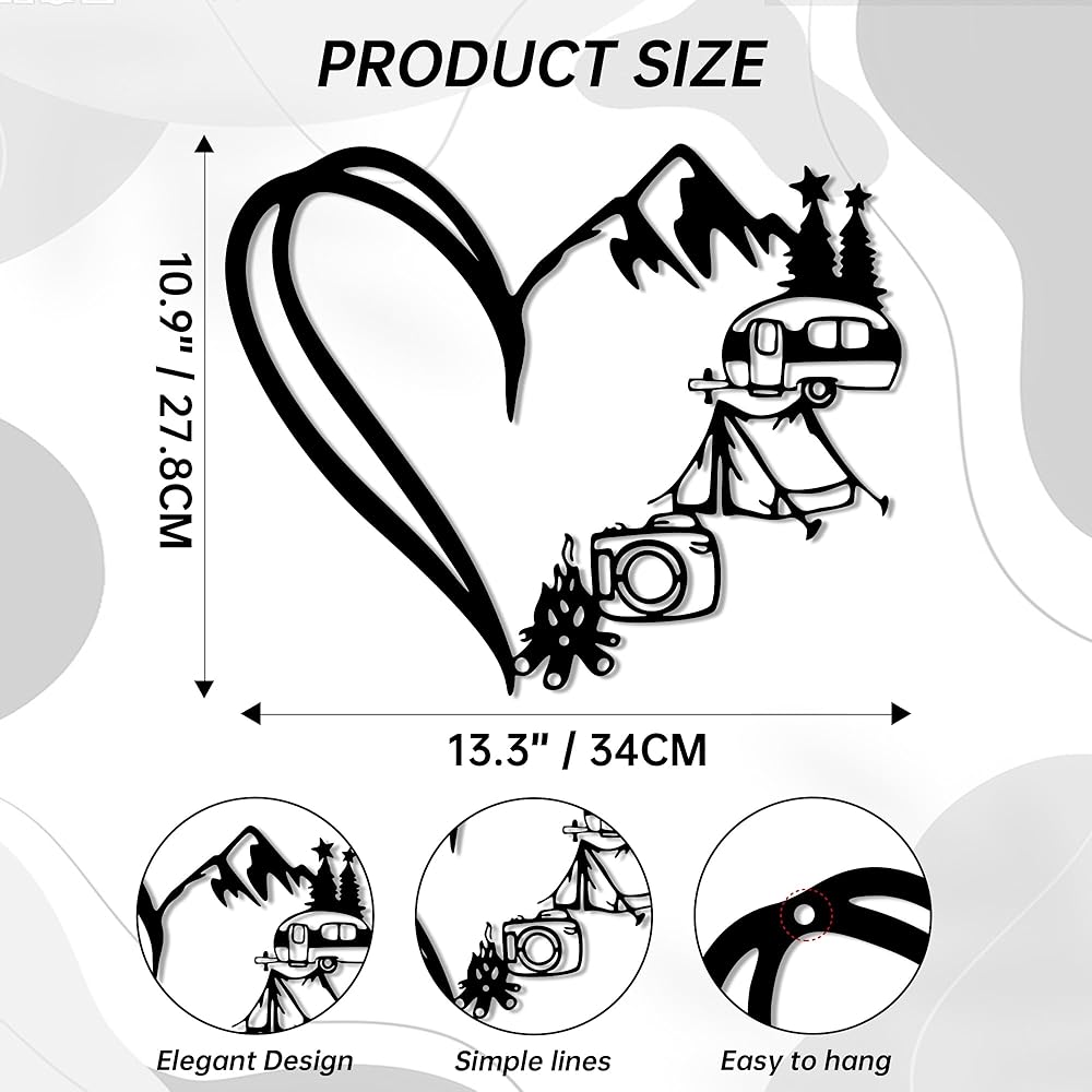 【Celebrate Life on the Open Road】Transform your space with our Adventure RV Wall Sculpture—crafted for travelers who believe home is where you park it! This intricately designed mountain wall art piece (13.4x10.9 inch) blends RVs, pine trees, tents, a camera, flames, and a central heart wall decor motif, radiating wanderlust in every curve. Perfect as nostalgic camper decor or inspiring adventure decor for your mobile sanctuary.