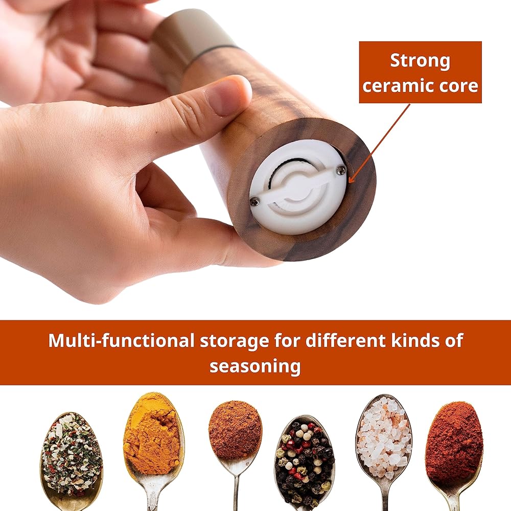 Easy to use: This kit is easy to distinguish between a mill and a storage tank, which can easily separate your products. The grinder only needs to twist the nut on it to easily put in the various spices you need to grind. The storage tank only needs to open the lid at the bottom to easily add any salt or seasoning powder