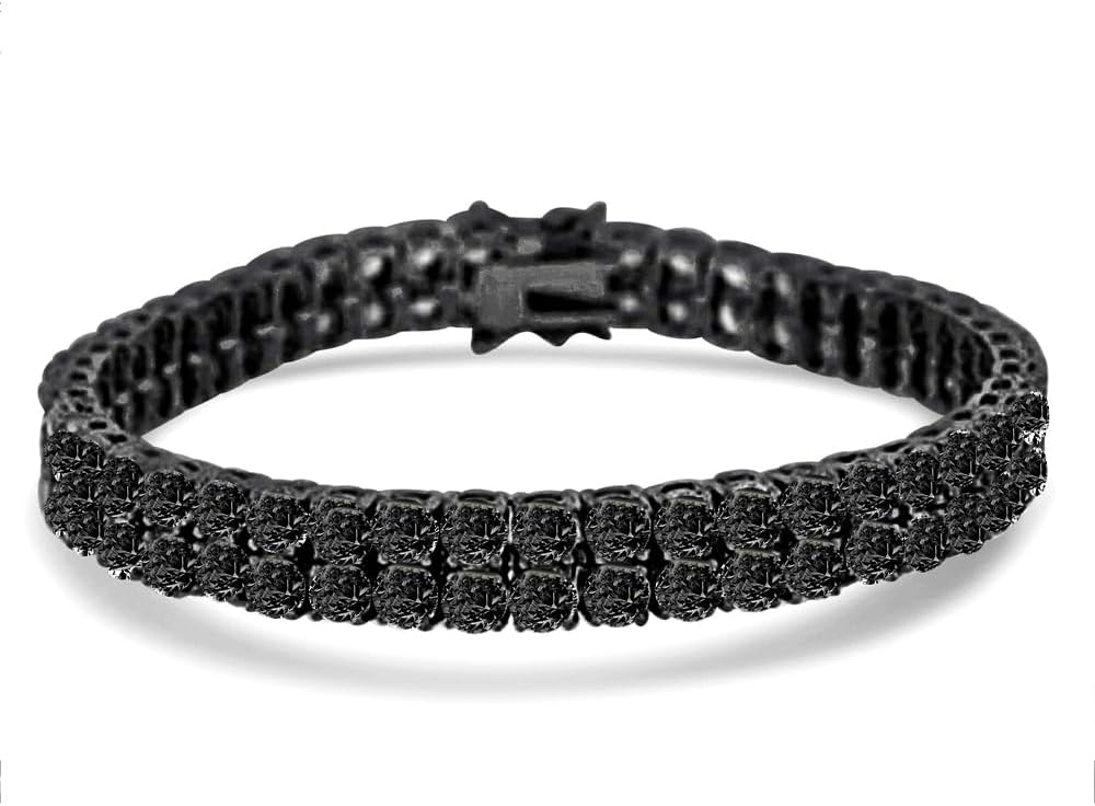 Metal : High Quality Solid Australian Brass Finish : 14K Black Gold Bracelet Length : 7,7.5,8,8.5 Inch Bracelet Width : 8 mm Stone : Simulated Diamonds ( Cubic Zirconia ) Stone Quality : Premium Zirconia Stone Color : Onyx Black Stone Shape : Round Stone Setting : Pave/Solitaire Stone Carat : 6.75 Cwt. Gender : Unisex Condition : New With Tag Weight : 25 + Grams (Approximant) Double Safety Lock