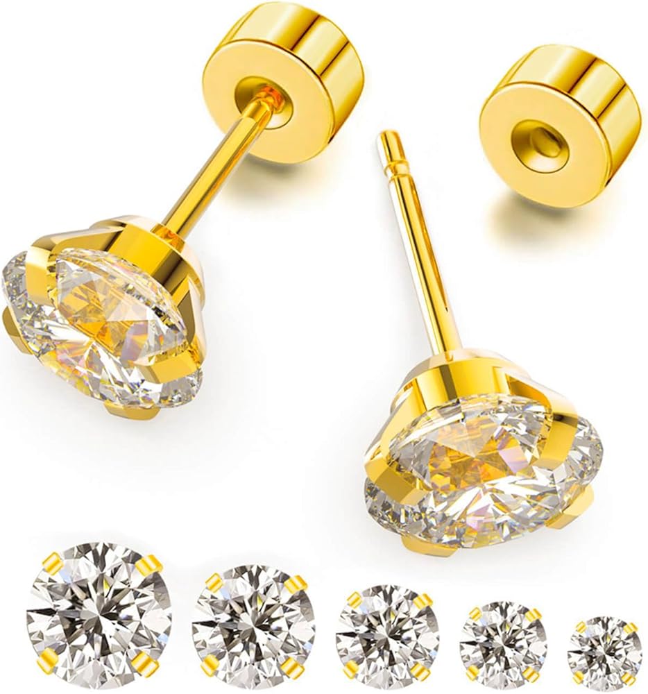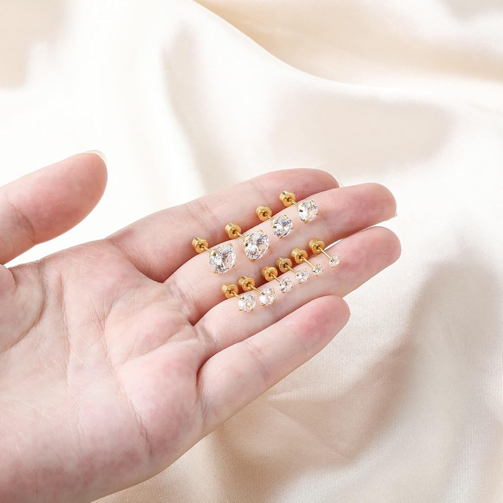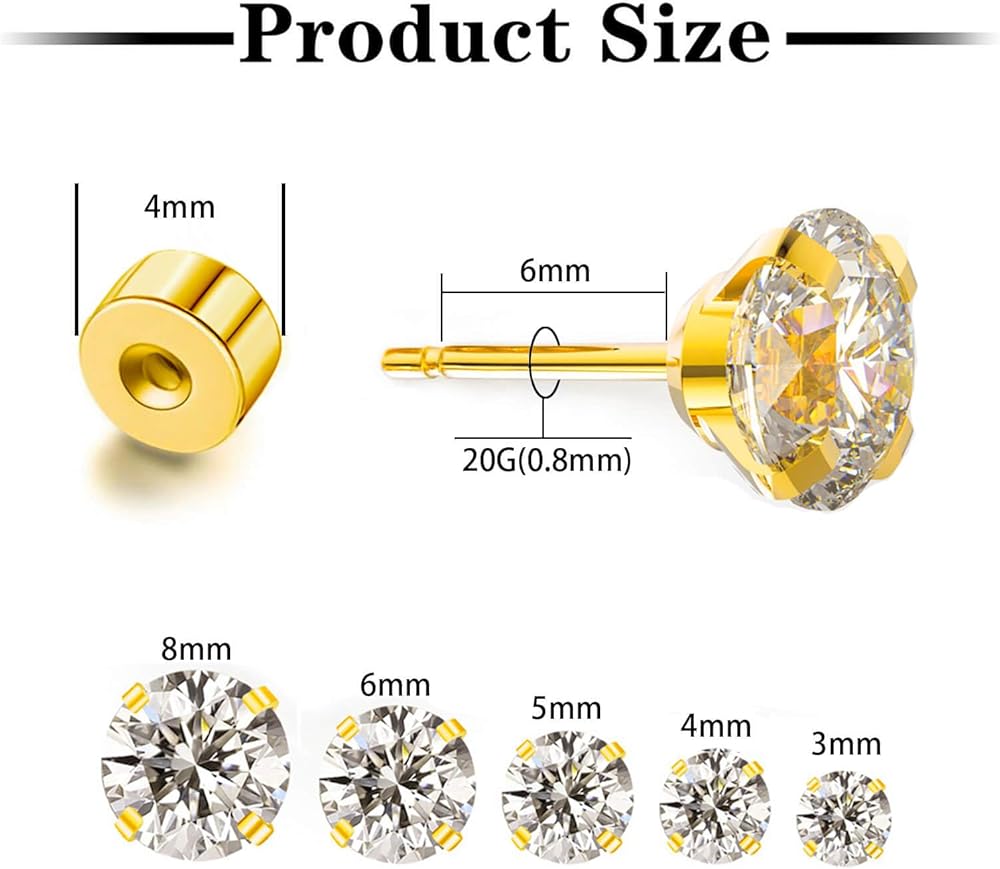 5 Pairs Flat Back Stud Earrings Set: You will receive 3/4/5/6/8mm 5 different sizes cubic zirconia stud earrings, Perfect for women and men wear them alone or stack them for a stylish look.