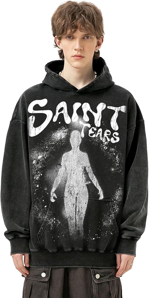 Key Features and Appeal:The cosmic "Saint Tears" print combined with the vintage washed finish makes this hoodie a statement piece for any outfit. It bridges the gap between streetwear and artistic expression, making it perfect for those who love to stand out with bold and creative fashion.