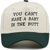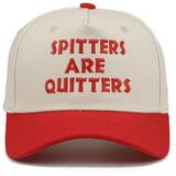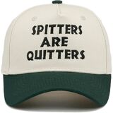 BOLD TWO-TONE WITH STATEMENT EMBROIDERY: Features a trendy two-tone design and the humorous embroidered phrase “Spitters Are Quitters,” perfect for making a fun statement.