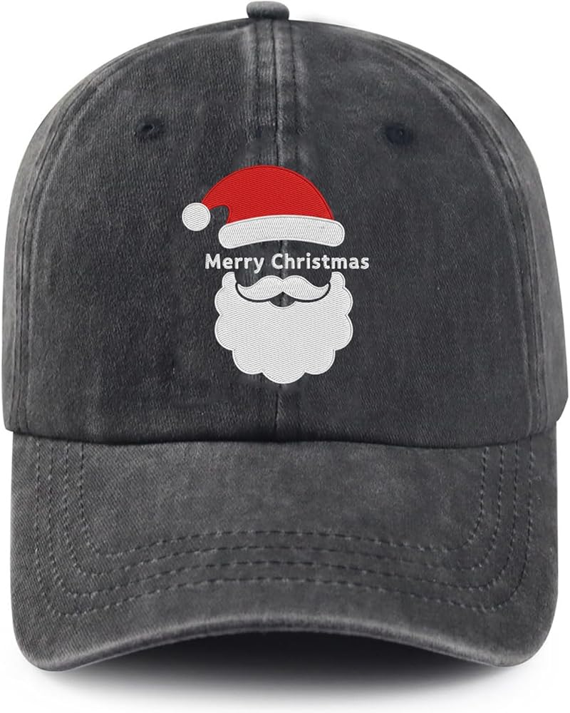 Get into the holiday spirit with this charming Christmas-themed baseball cap! Featuring a festive Santa Claus design with his iconic hat and beard embroidered in crisp white and red, along with a cheerful 'Merry Christmas' message. The dark gray cotton construction offers casual comfort, while the adjustable strap ensures a perfect fit for all head sizes. This unisex cap has a classic 2.75-inch brim and maintains the traditional baseball cap silhouette, making it ideal for casual winter wear. Perfect for holiday events, seasonal outings, or adding a touch of Christmas cheer to your everyday look. The durable cotton material is easy to care for - simply hand wash in cold water and air dry. Whether you're heading to a holiday gathering or running seasonal errands, this festive cap combines practicality with holiday charm. One size fits most adults with its adjustable design.
