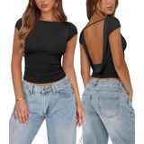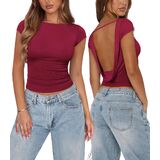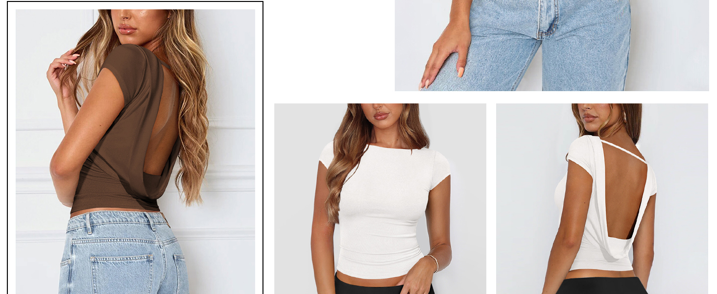 【Features】Women's going out top features a boat neck, cap sleeves, double lined, cropped and fitted cut that refined and minimalist. The open cowl back design, low back, and decorative straps showcase a sexy back while preventing shoulder slippage, making it the perfect choice for effortlessly creating an alluring look.