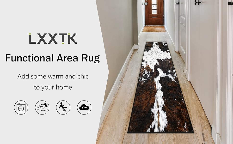 No-Slip and Sturdy:Made of sturdy polyester fabric with a low - pile surface, this long hallway runner rug is ideal for high - traffic areas. The long cowhide print rug comes with a strong TPR rubber backing to prevent slipping, ensuring it stays firmly in place. This non-slip entrance rug won't slide around or scratch the floor. It's a great choice for busy households with children, pets, or frequent guests.