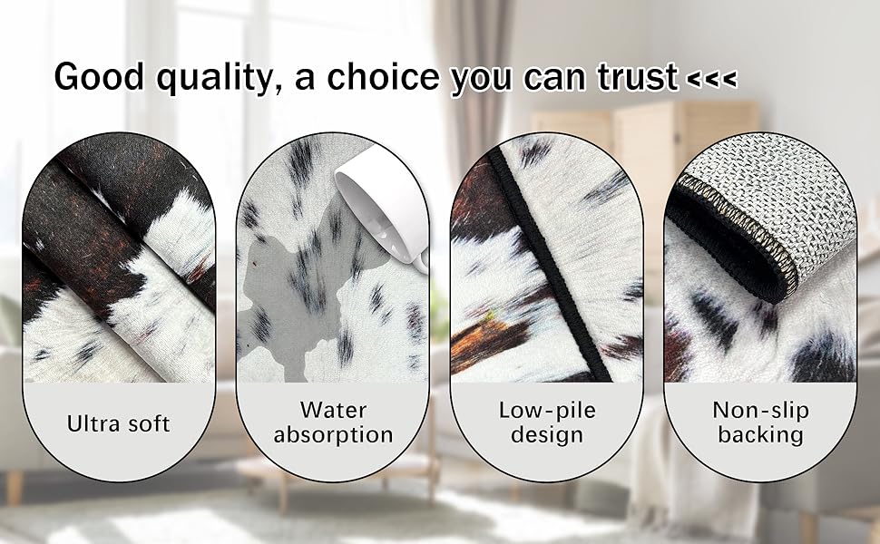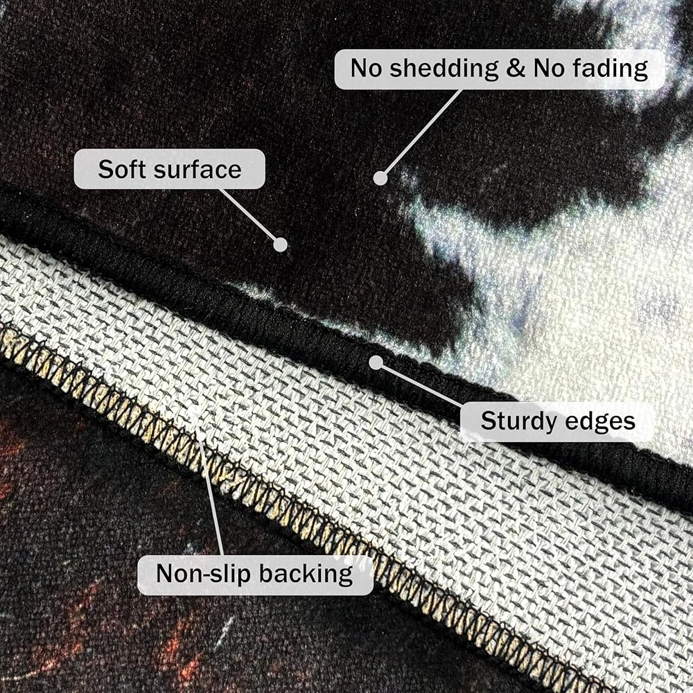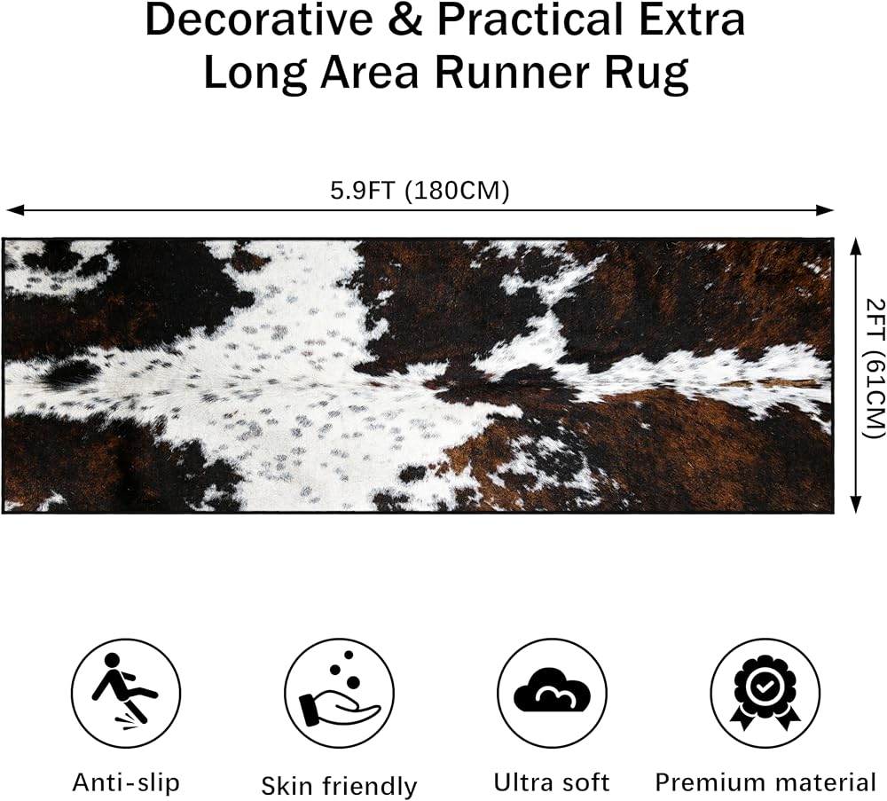 Western-Style Decoration: Enhance your home decor with these cow print mat 2 x 6 long runner rug with a cowhide print is created using digital printing technology, guaranteeing clear, vivid patterns that won't fade easily. Meticulously the unique fur area rug adds a touch of warmth and relaxation to your home, combining both decorative and practical functions.