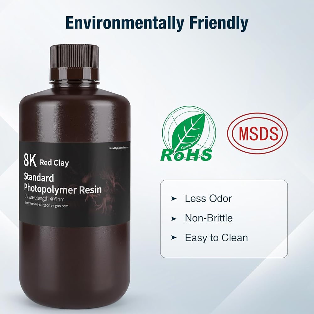 ELEGOO 8K 3D Printer Resin, Water Washable Resin 405nm UV-Curing Resin, Best for Saturn 2 8K LCD 3D Printer Space Grey 1000G