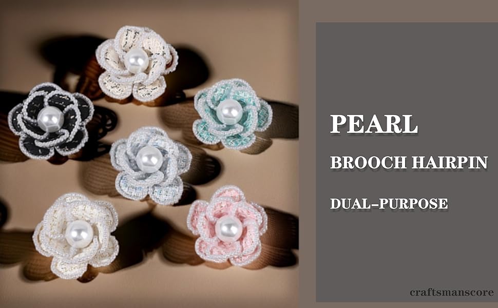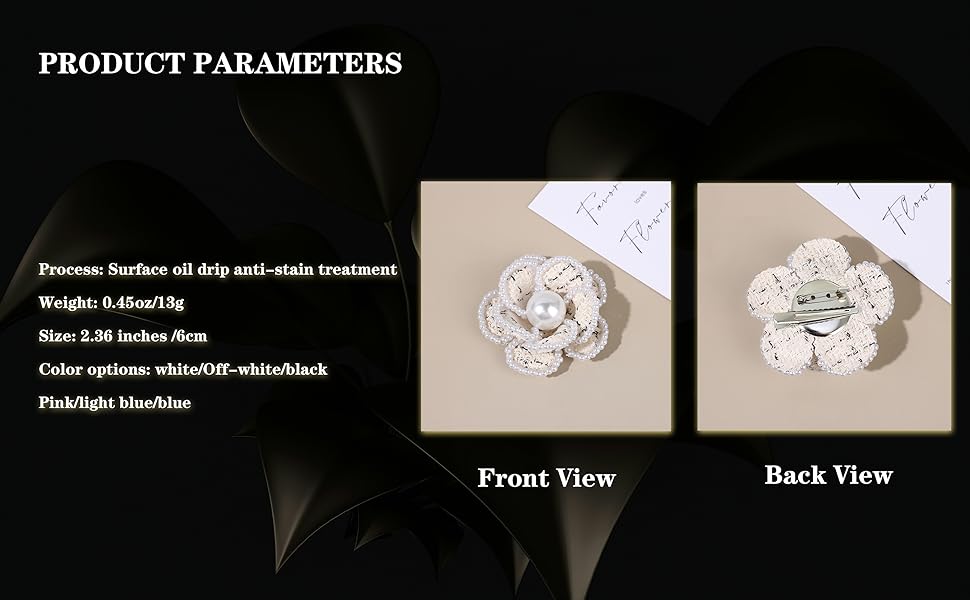 Classic Symmetrical Design:2.36" × 2.36" (6cm × 6cm) compact square silhouette with layered camellia petals and faux pearl centers, blending vintage charm with modern versatility for lapels, hats, bags, or hair accessories.
