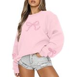 Feature: Womens bow sweatshirt, school clothes for teen girls, sweater with bows for women, girls oversized sweatshirt, pink sweatshirts with bow, cute preppy clothes, crewneck sweatshirts, long sleeve pullover sweatshirt is a simple, casual and cute design for girls