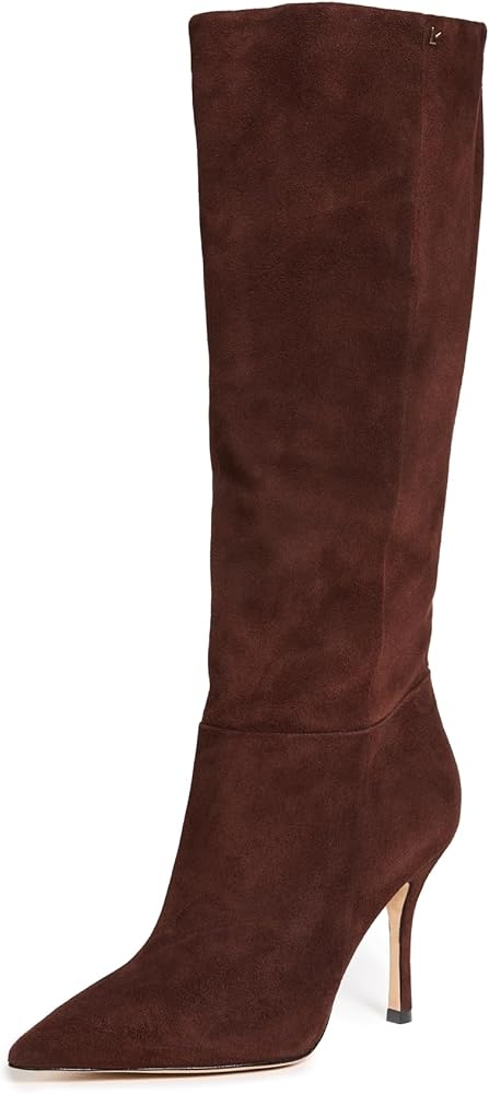 Strut your stuff in these bold Kate boots, oozing confidence. They peek seductively from beneath a dress or stand out over jeans, thanks to their stiletto heel and pointed toe. Crafted in rich brown kid suede leather, these knee-high Larroude boots feature a closed pointed toe, pull-up style, and a 3.8-inch stiletto heel. The finely crafted leather sole ensures support, durability, and comfort, while the insole boasts a memory foam cushion and hot stamp logo. Before wearing, remove the protector. Handmade in Brazil for a touch of artisanal elegance.