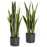 KOL 25.6'' Artificial Snake Plant Sansevieria Indoor, 32 Leaves Lifelike Faux Plants, Home Garden Decoration Mother in Law Tongue 2ft, Fake Potted Houseplant, Green