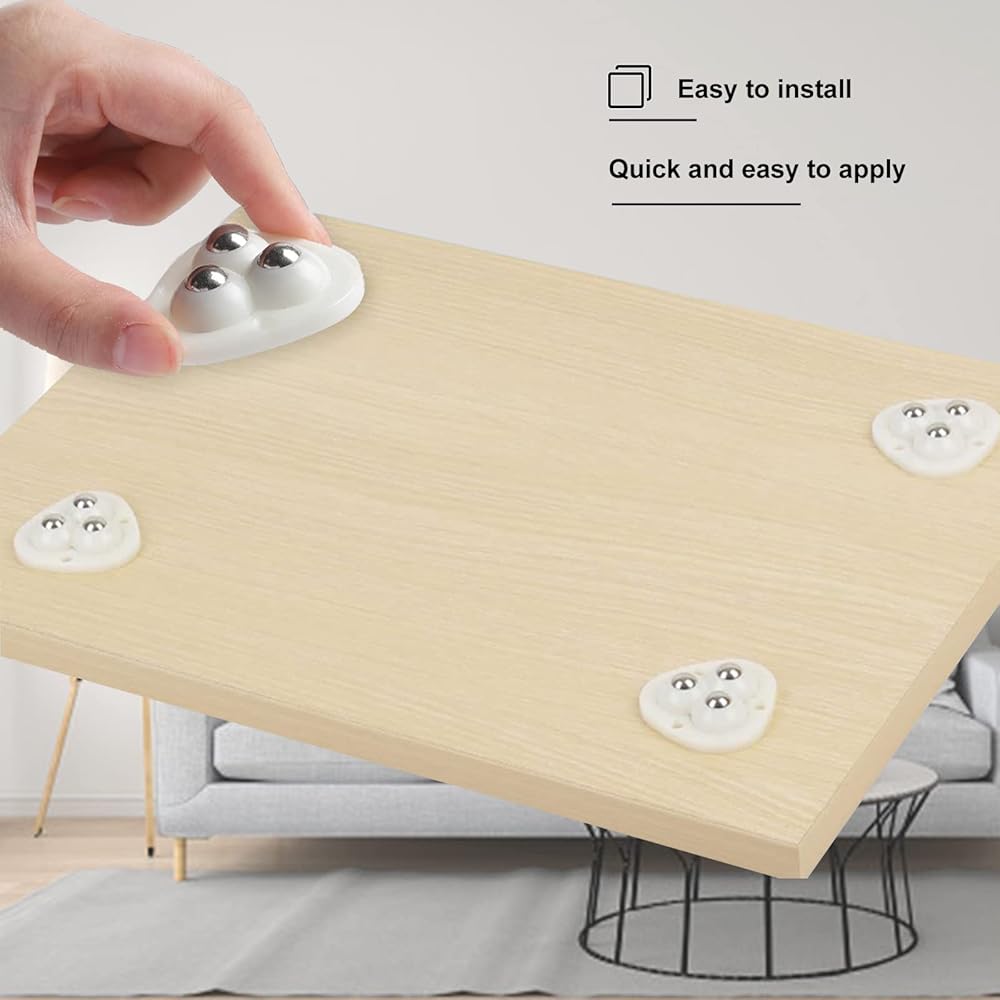 Features: Upgraded mini universal wheel from 1 steel ball to 3, thickened plastic, more durable, better fit with the ground, will not scratch the ground, and more quiet and stable, easy to install, no need to open holes.