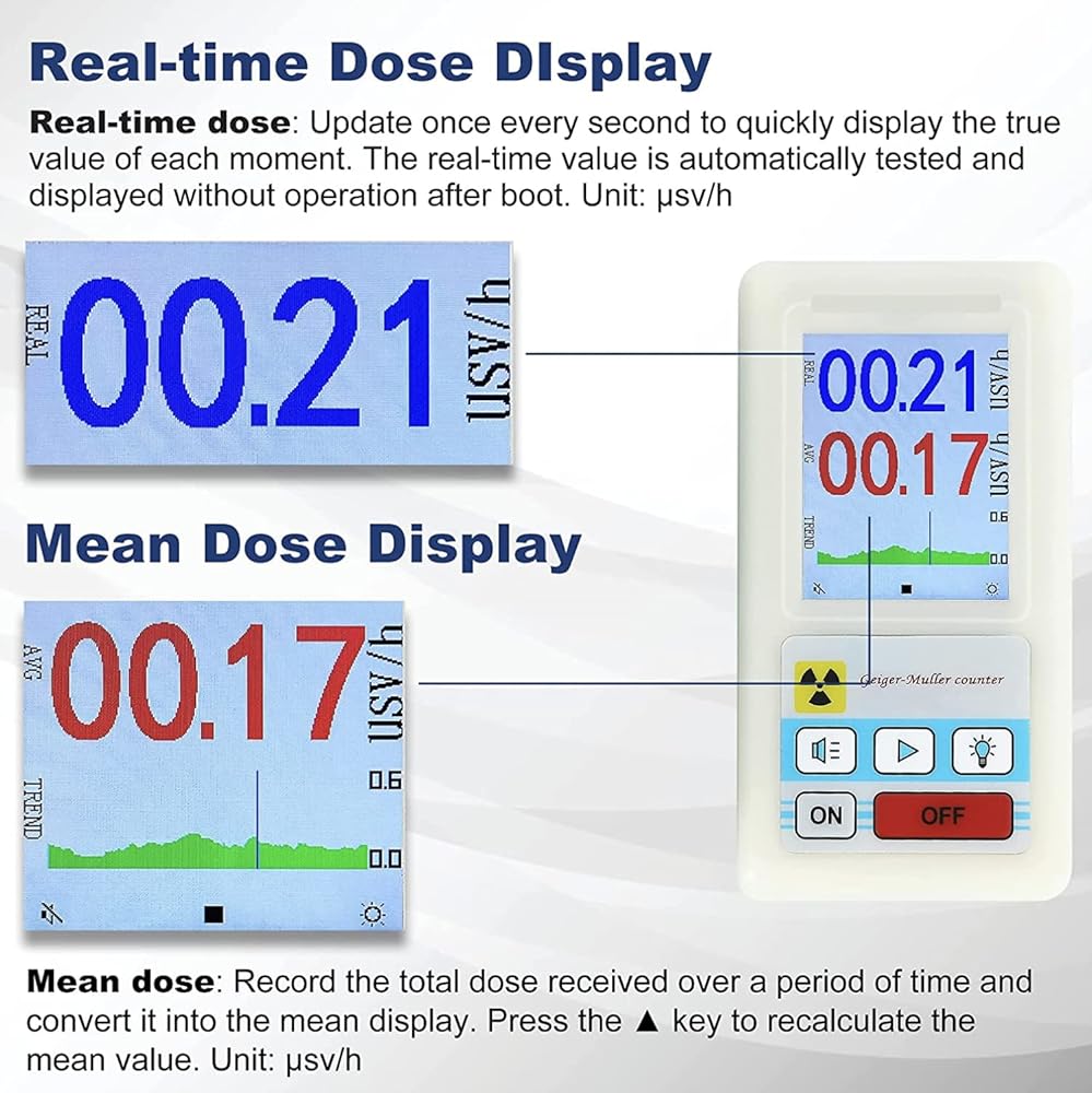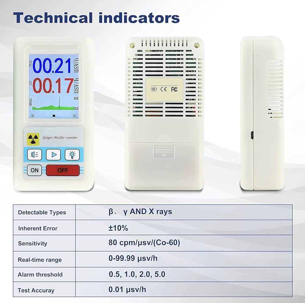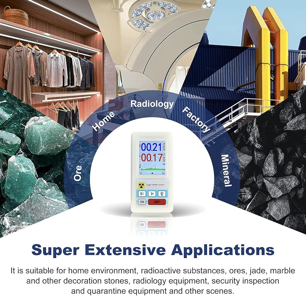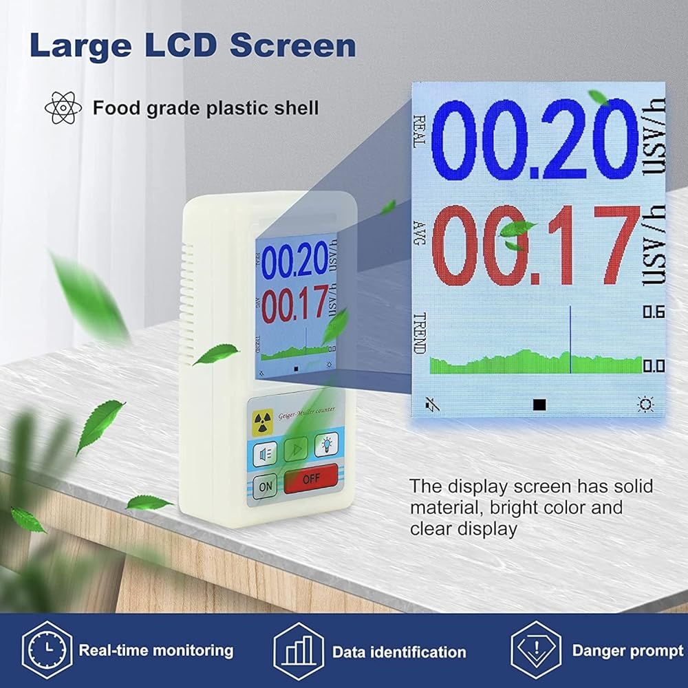 【RECORD DATA MORE INTELLIGENTLY】High sensitivity, wide measuring range, long lasting advantages. The daily use of nuclear radiation detector helps to avoid radiation hazards in daily life.