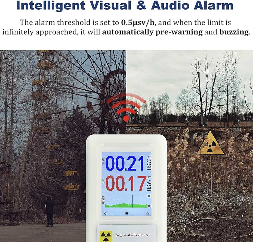 【INTEGRATED SIGNALS】The geiger nuclear radiation detector comes with audible and visual signals integrated for the level of radiation detected.