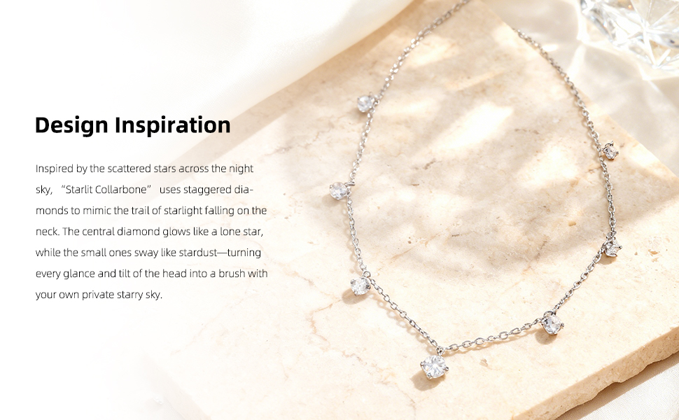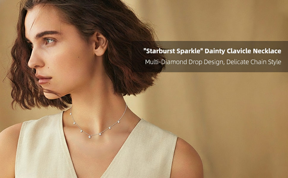 【Flattering Neckline Enhancement】The streamlined chain and scattered moissanite details gently frame the collarbone, enhancing neck lines and adding a touch of refinement—perfect for balancing crewnecks, V-necks, scoop necks, or off-the-shoulder tops
