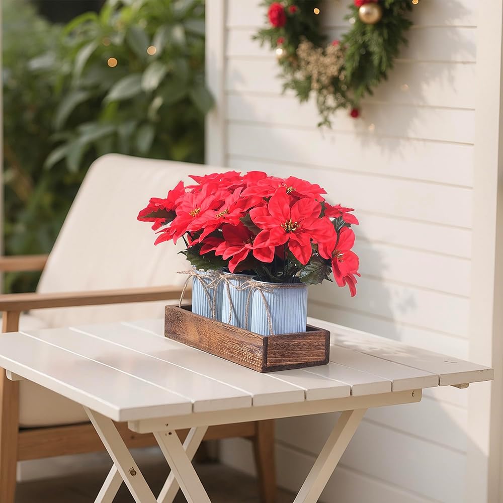 Versatile Décor: The compact size and rustic farmhouse design make this poinsettia display ideal for holiday decorating across styles—modern, traditional, rustic, or country. Use it as a centerpiece, shelf accent, or office decoration.