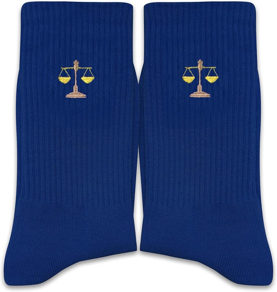 Balance Scale Embroidered Socks - Law Themed Gifts for Lawyer, Law School Student, Colleagues, etc. - Favors for Birthday, Christmas, Graduation, etc.(019)