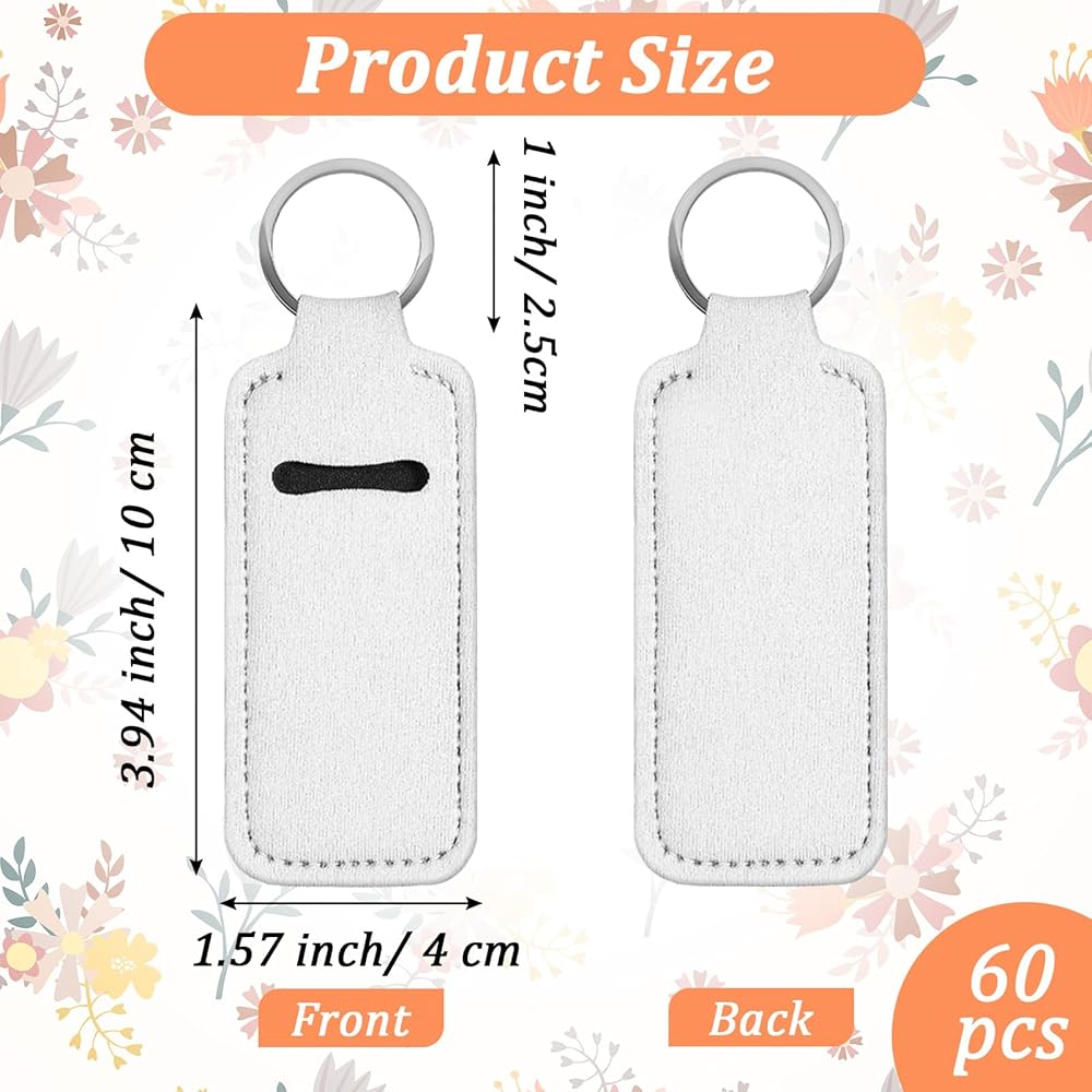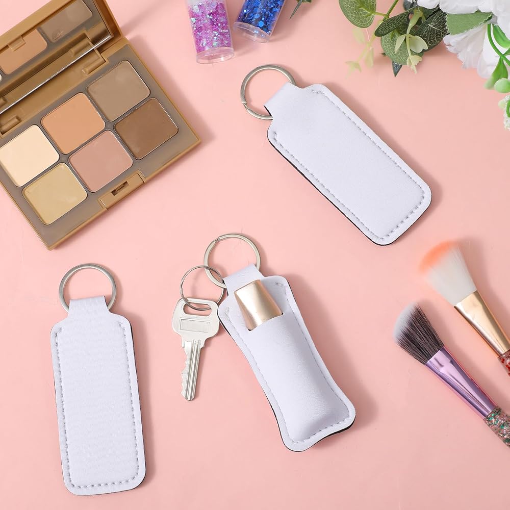 MAQUITA 60 Pcs Sublimation lipstick holder Blank Neoprene Lipstick Holder Keychain Blanks Heat Transfer Keychain for Women DIY Key Ring Travel Supplies