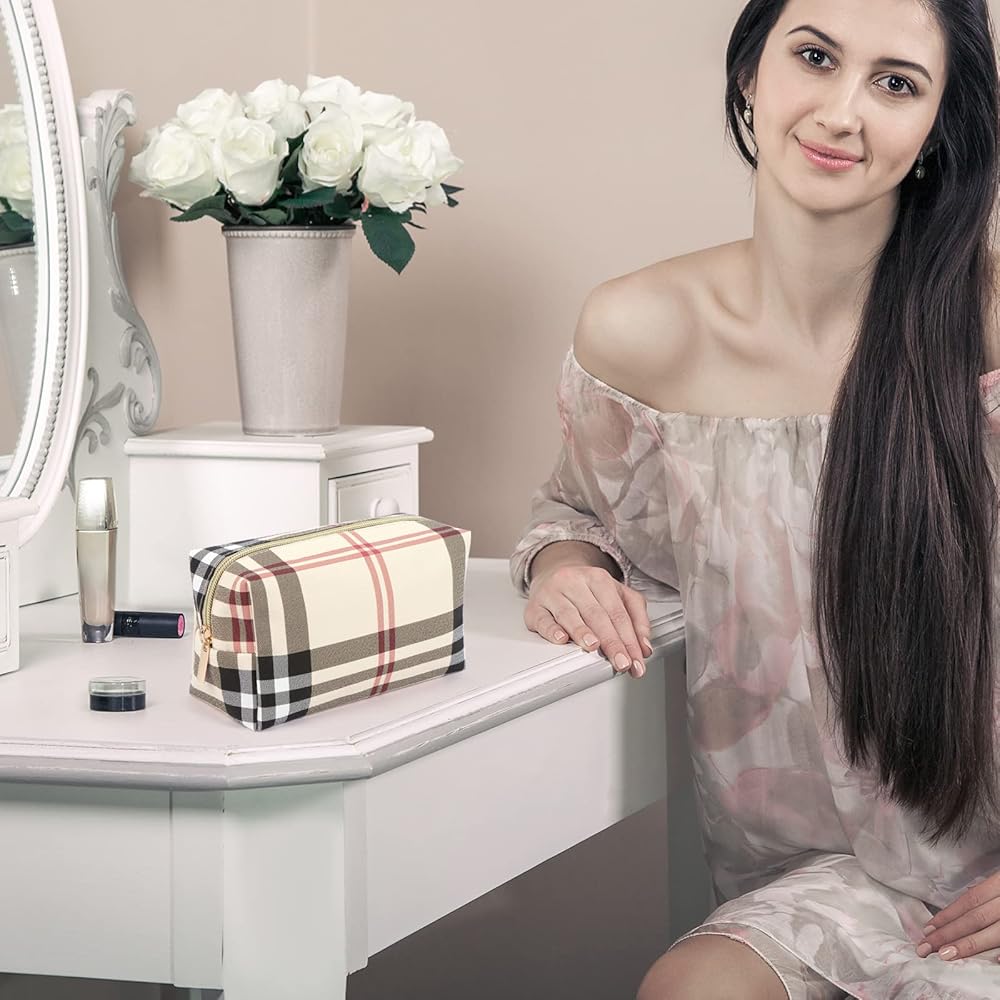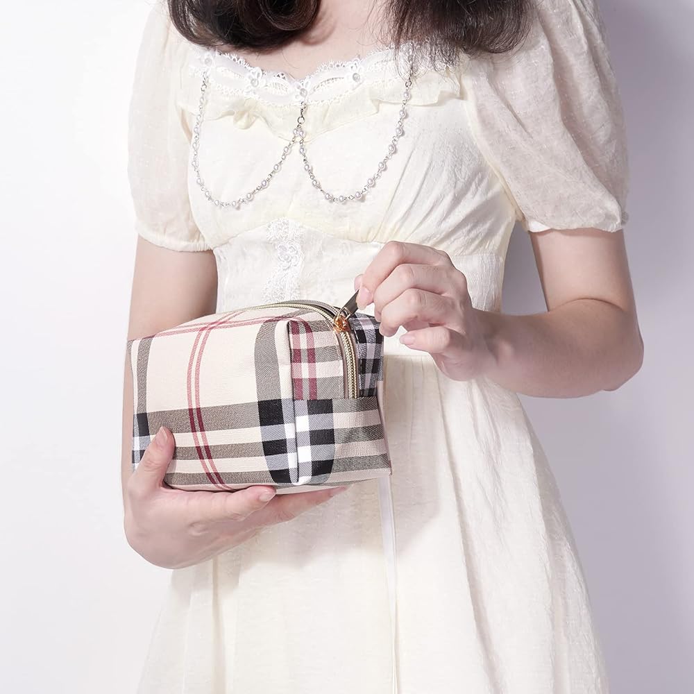 【HIGH QUALITY】- MAANGE makeup bag is made of soft PU leather, easy to clean. The waterproof cosmetic bag keeps the stuffs from getting wet or falling out. Cute plaid pattern for every occasion.