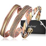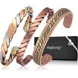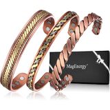 MagEnergy Copper Bracelets for Women Men, Set of 3 Pcs, Magnetic Therapy, Handmade 100% Copper Cuff Bracelet, Jewelry Gift Box