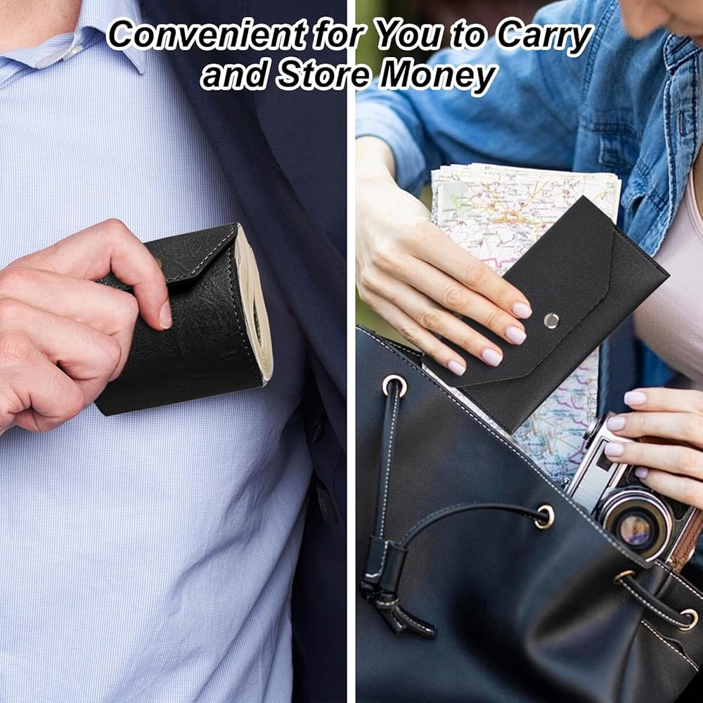 2 Pcs Cash Envelope Wallet, Reusable Fast Access Cash Wrap Wallet for Men Women with Card Holder (Black)