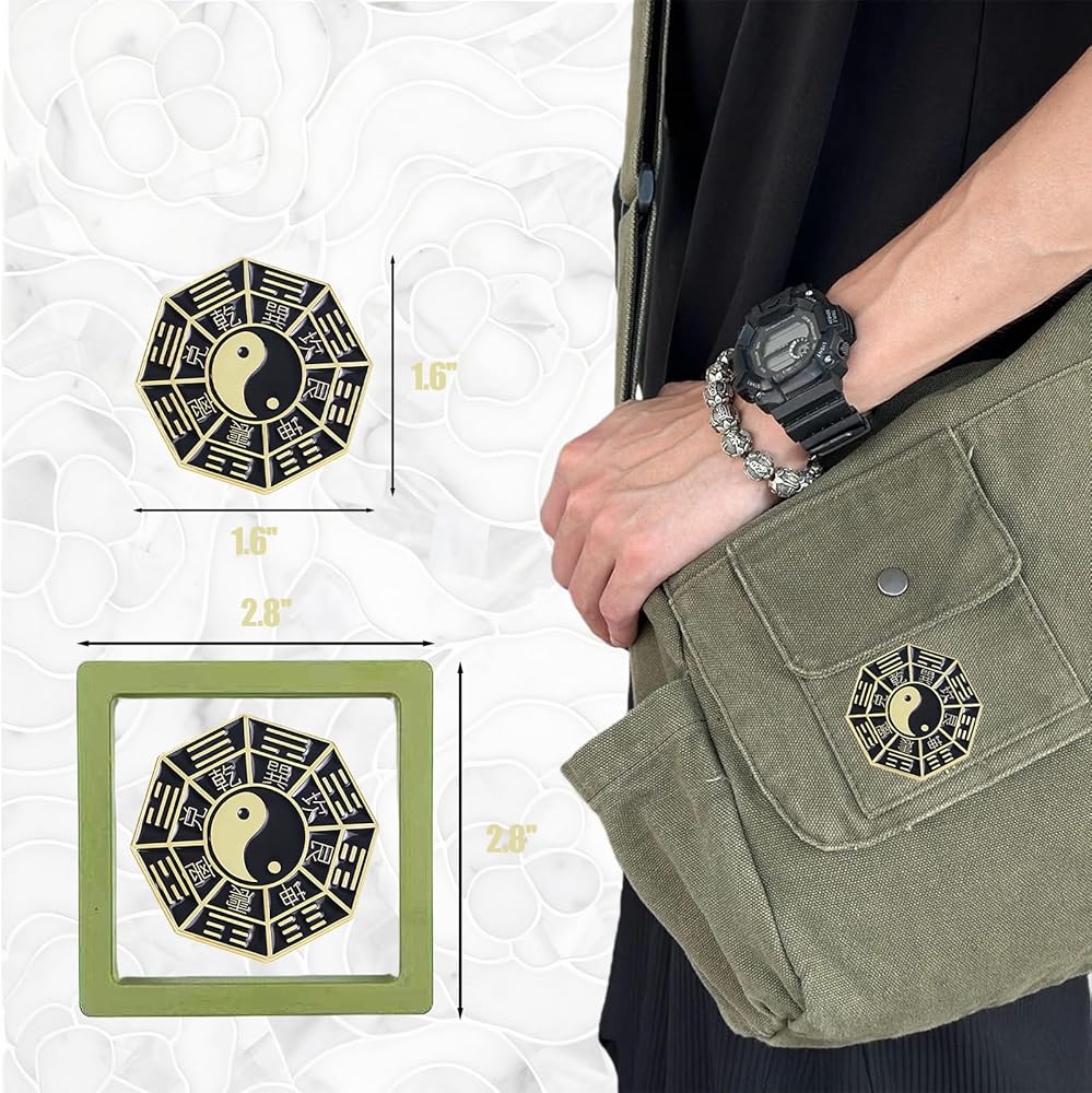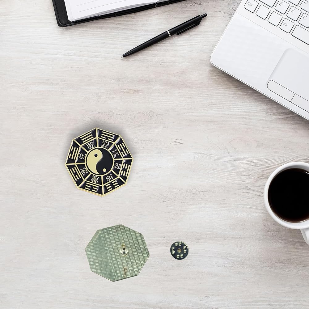 RCWG Lucky Pin, Chinese Tai Chi Eight Trigrams, Funny Button Pin, Chinese Aesthetic Enamel Lapel Pin for Backpacks, Jackets, Hats, Kids, Girls. Attract Positive Energies Wealth, Health, Luck and Peace