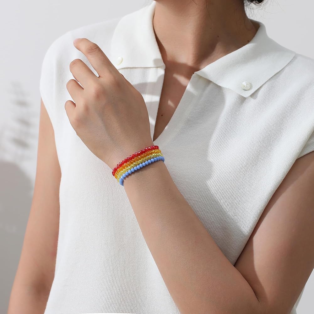 ♥【4PCS Stackable Bracelet】This stylish set includes 4 distinct bracelets, each bracelet has unique color. Wear them stacked together for a bold look or separately for versatile styling. It's good for going party, daily wearing, dating, graduation party, concerts, wedding.