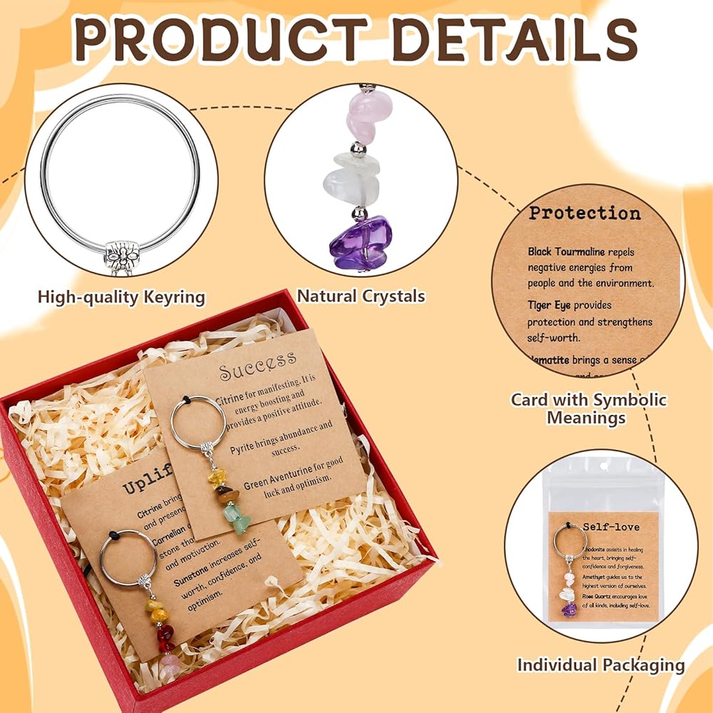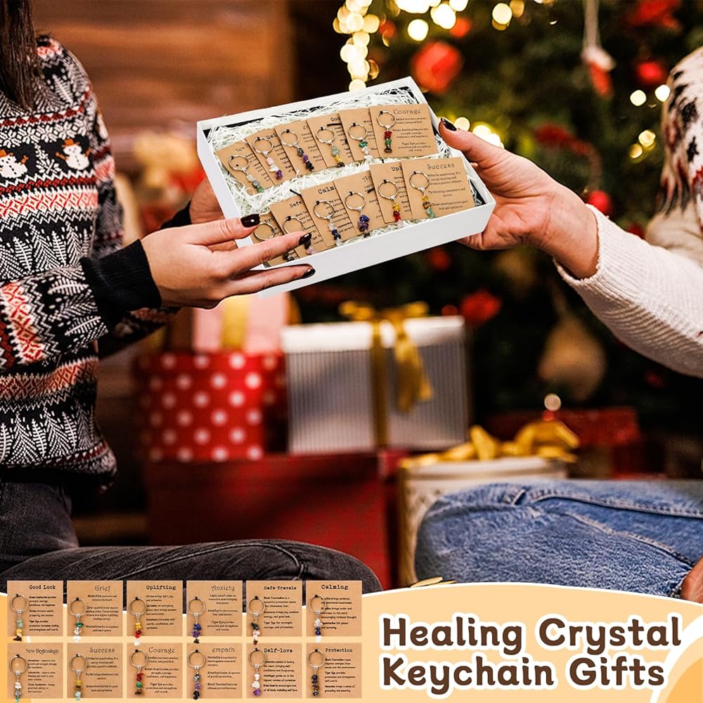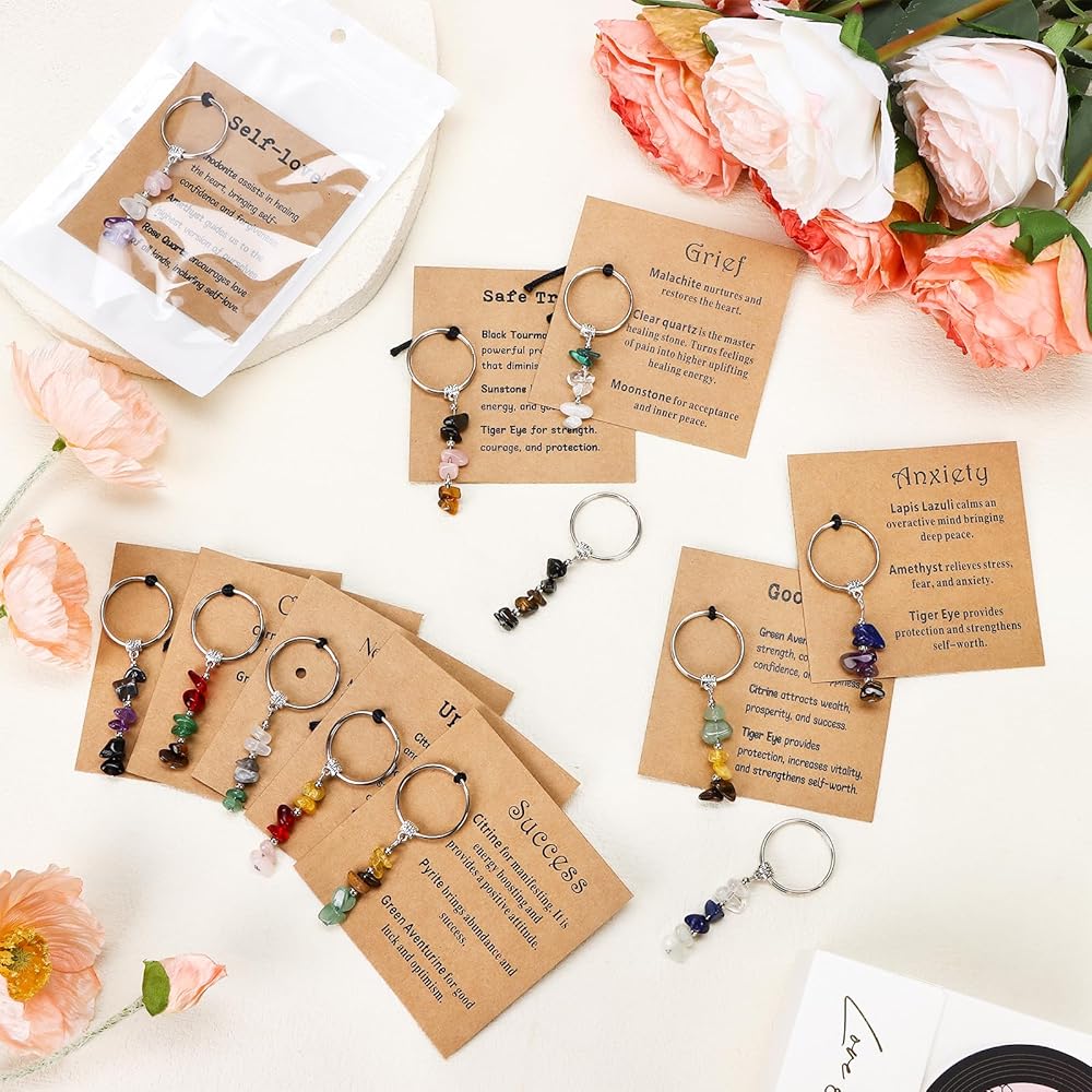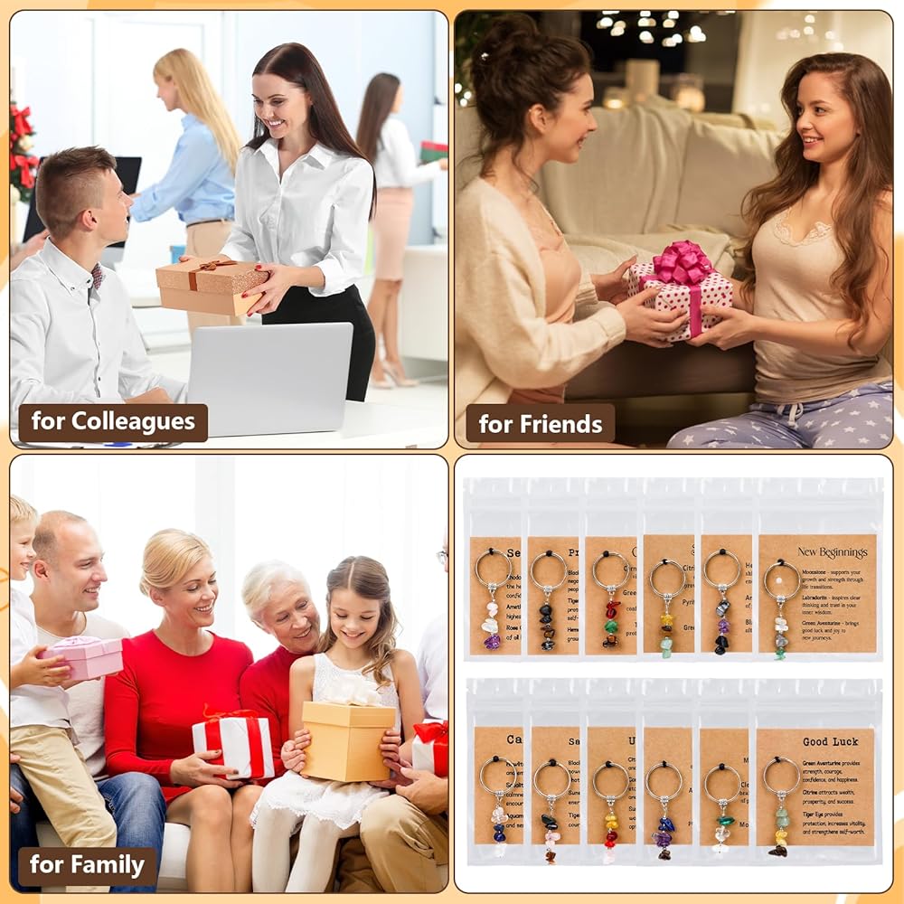 12 Sets Crystals Keychain Gift for New Beginnings Bulk Healing Gemstone Keychain New Beginnings Good Luck Gifts for Coworker Anxiety Relief Keychain for Women Retirement Graduation