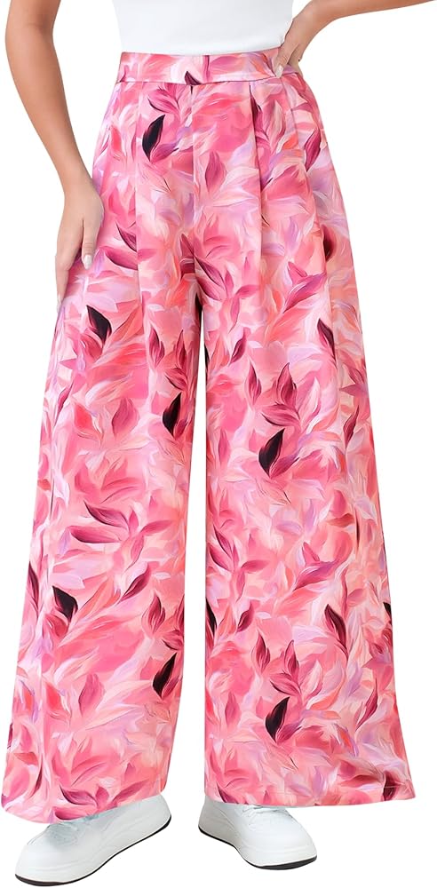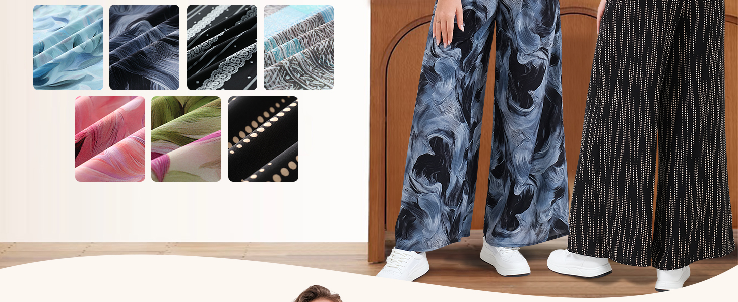 【MATERIAL】Womens palazzo flowy casual pants are made of 100% polyester, which is high-quality, lightweight and soft, skin-friendly, breathable to wear for Spring, Summer and Fall.