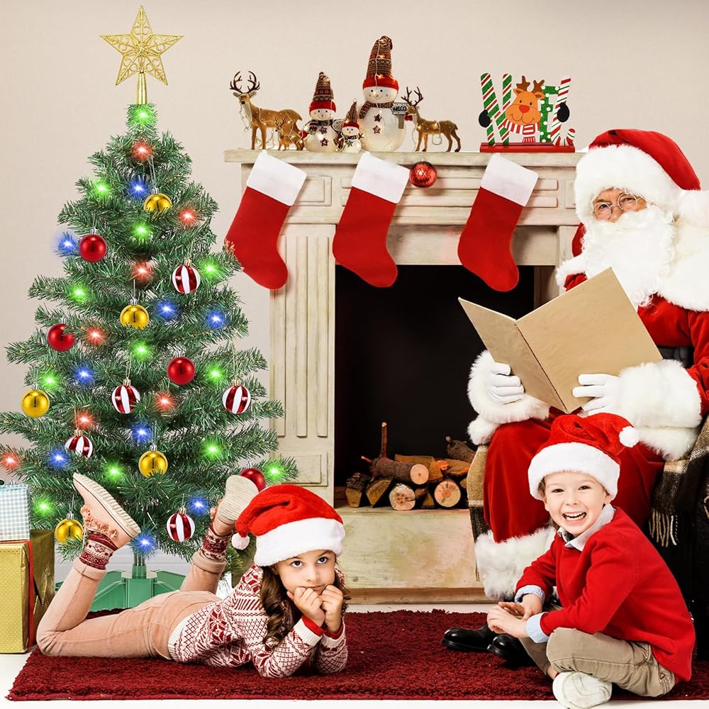🎄[ Versatile Christmas Decor ] This 3 Ft Christmas tree features a PVC waterproof base, providing stability and durability. Perfect for enhancing Christmas decorations, it complements various settings such as the living room, tabletop, small apartment, dining table, window sill table, fireplace, dormitory, children's room, office, and shop displays. The built-in lights add a warm and inviting touch to your holiday ambiance.