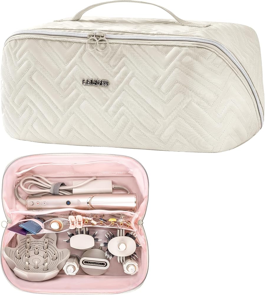 Leudes Hair Tools Travel Bag For Dy son Airwrap Hair Dryer Shark Flex Style Carrying Case Travel Makeup Bag Portable Pouch Open Flat Packing Organizers with Divider and Handle (Beige)
