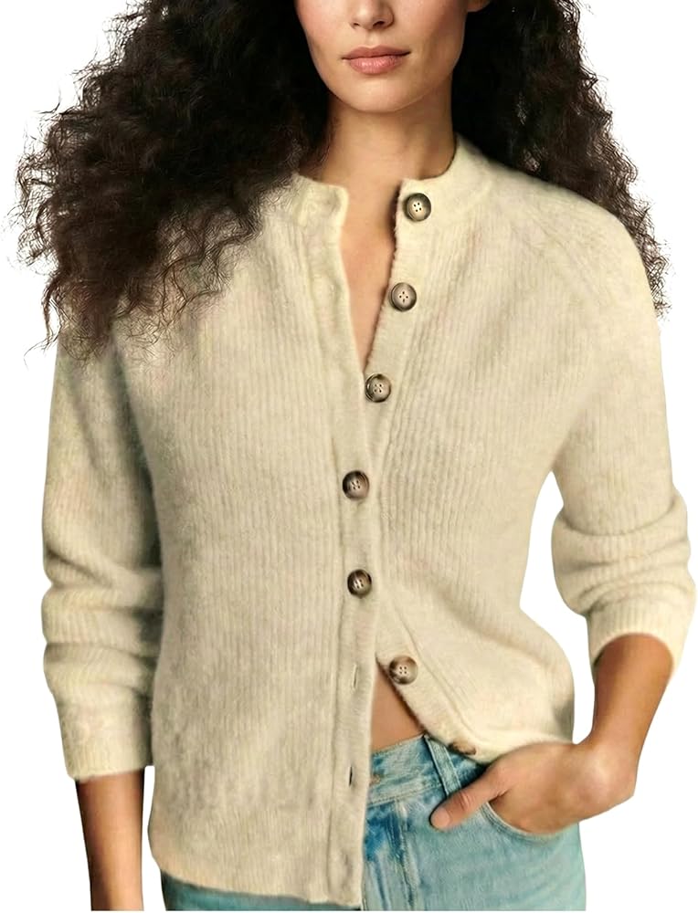 Thoughtful Design: The fashion cardigan for women is round neck, long sleeve, open front, color-blocking buttons, cable knit on the armholes, cuffs and hemline adds a touch of highlight.