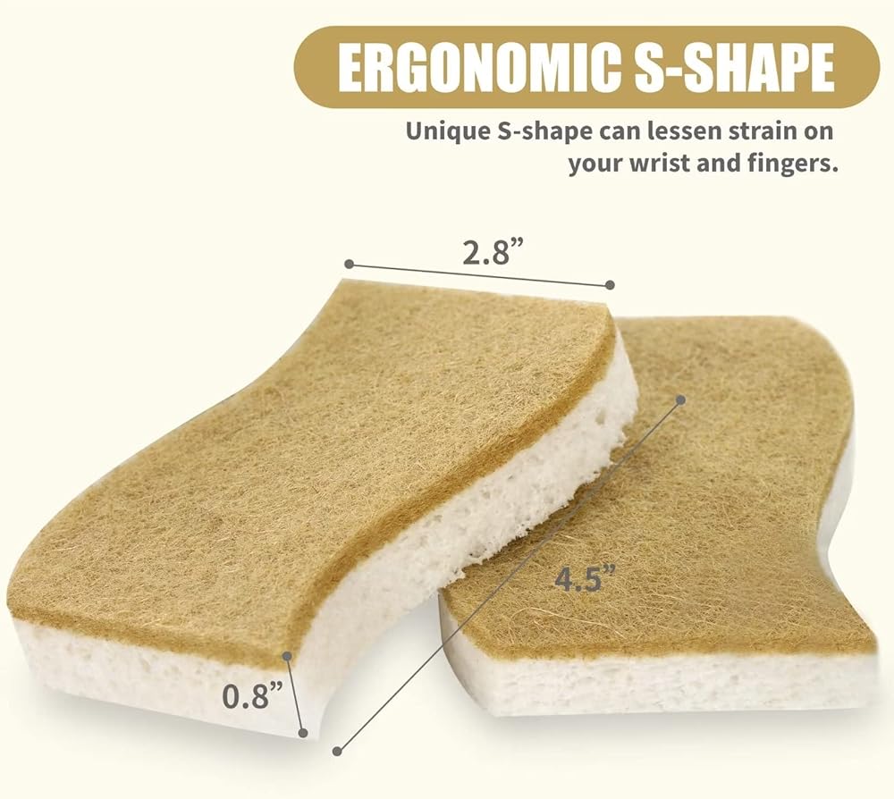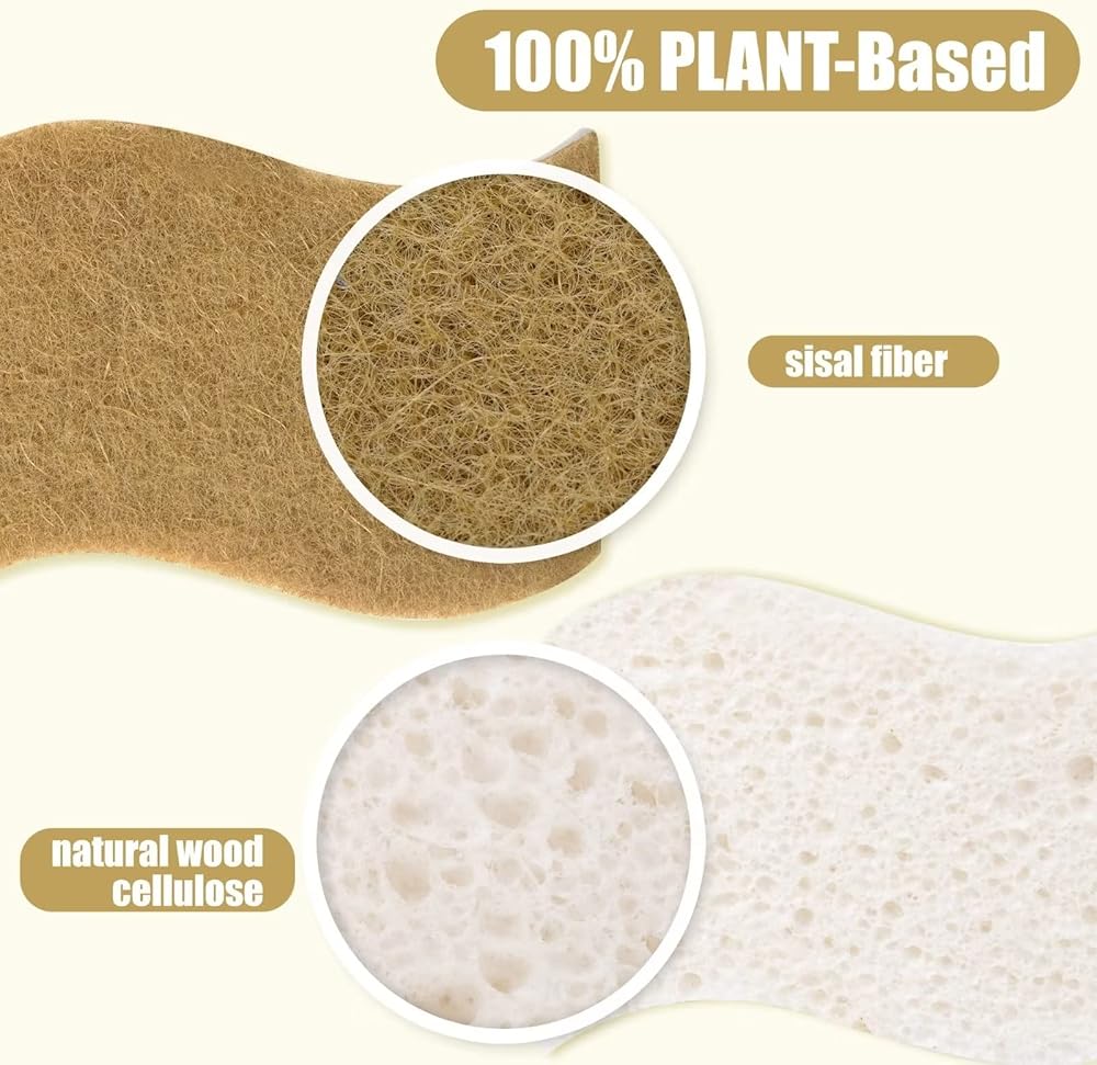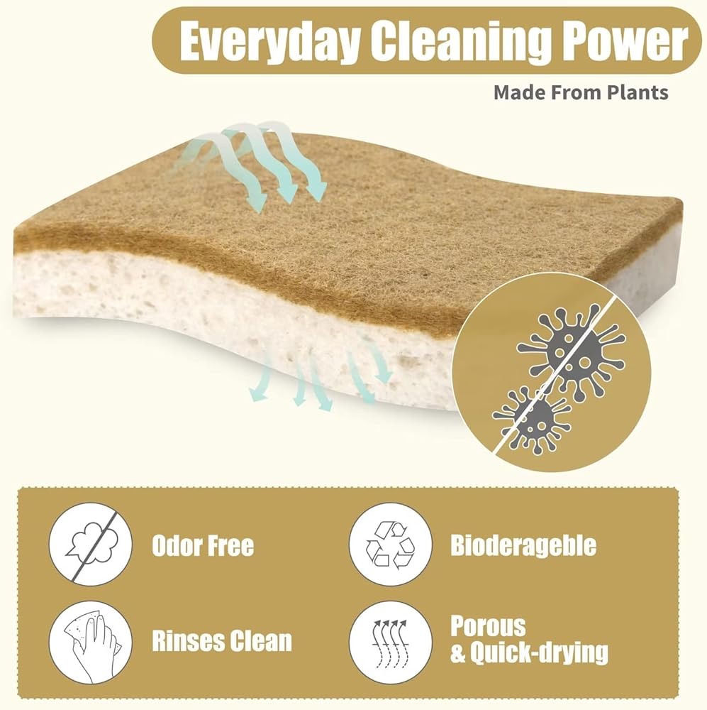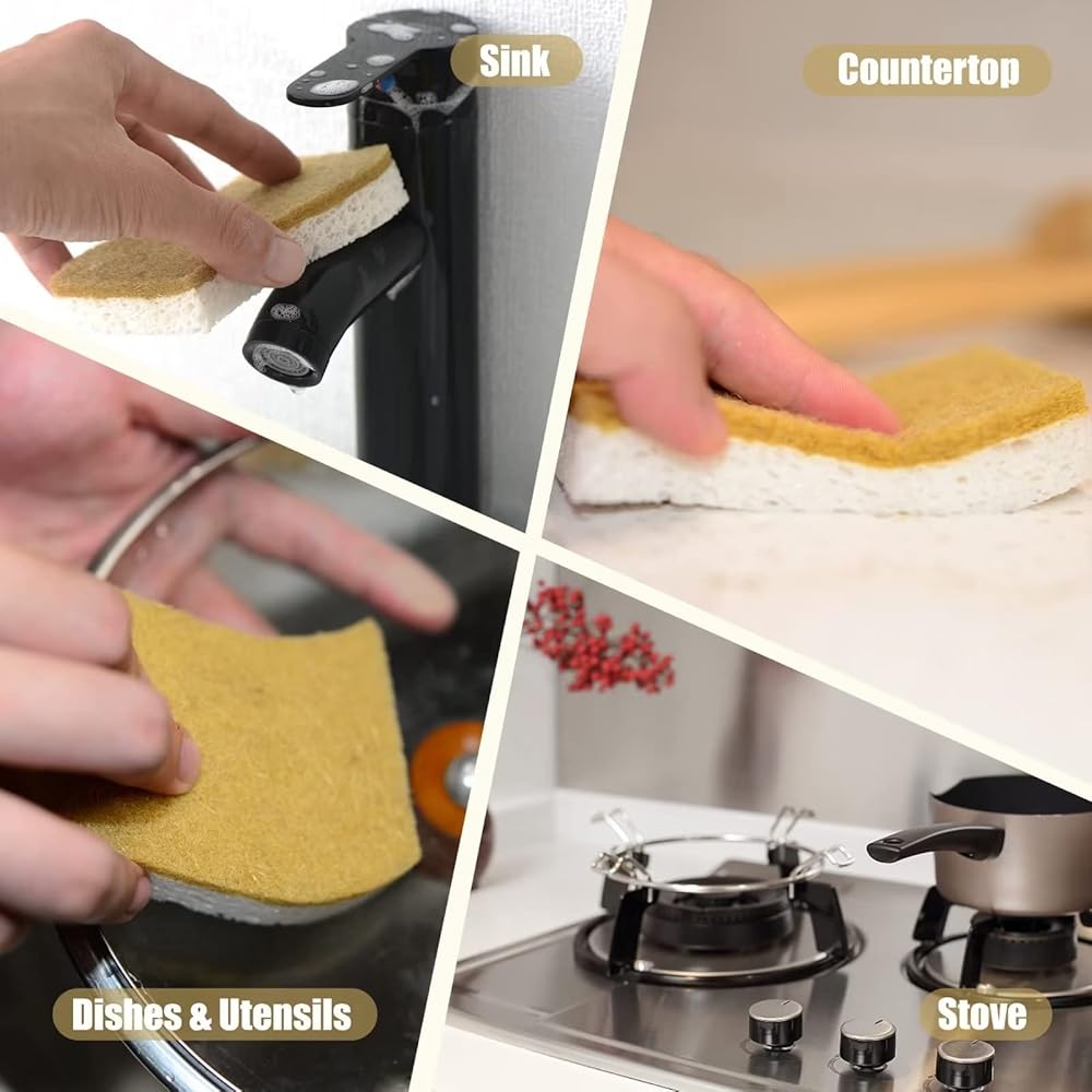 🌴EFFICIENT SCRUBBING & DURABLE: These compostable cleaning sponges effortlessly wipe away dirt, grease, grime, and other impurities quickly and efficiently to save you both time and effort. But don't worry it's easy to fall apart and short lasting. Natural household cleaning sponges are used 10x compression and Enhanced synthesis technology made to more tightly scrubber materials, they last longer compared to traditional sponges to provide you long term and reliable use.