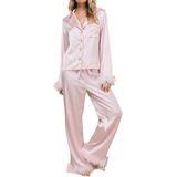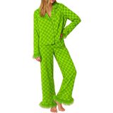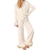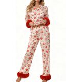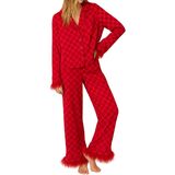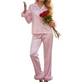 Women's Valentine's Day Pajama Set Long Sleeve Lapel Bow Stripe/Bow Heart Print Shirt Pants Sleepwear