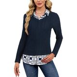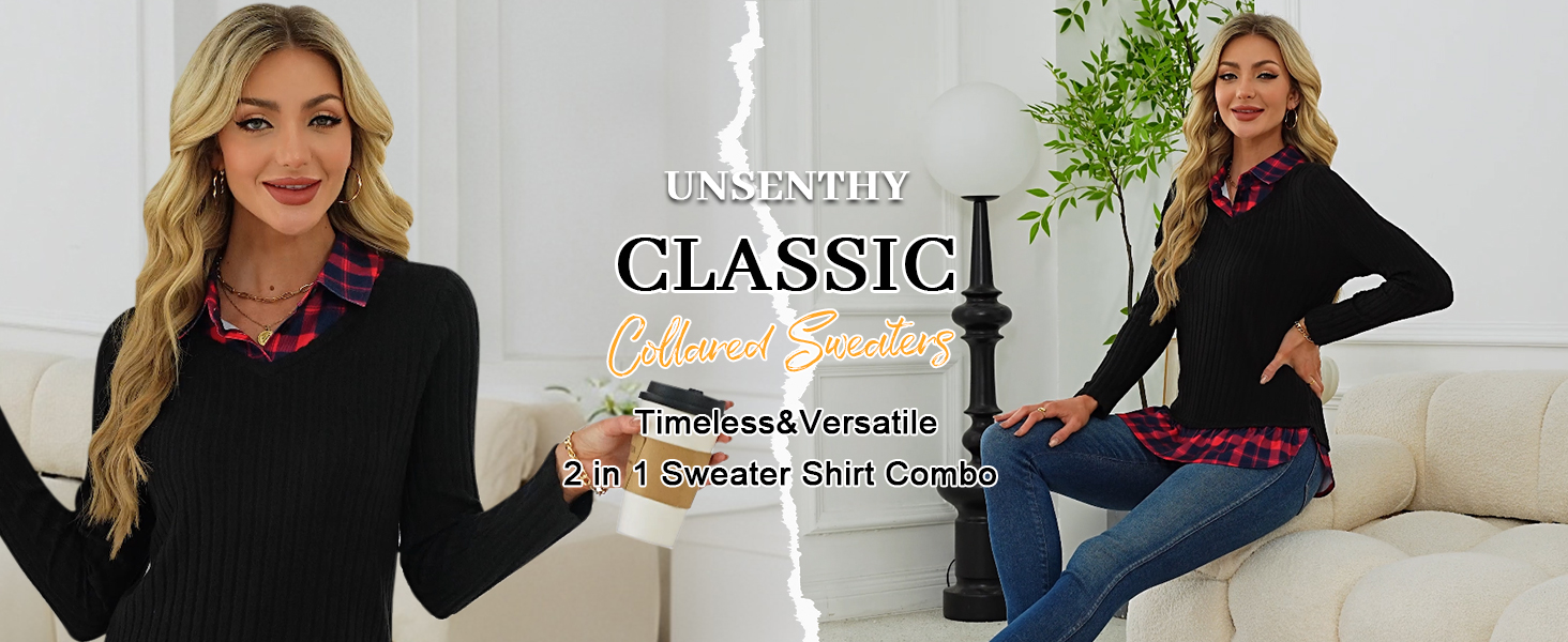 【Classic Collar Style】 This collared sweaters for women features a classic plaid shirt collar with two working buttons. You can button it up or leave it open to switch your style, making this sweater with collared shirt attached both classic and versatile.