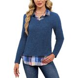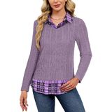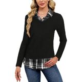 【Unique Plaid & Ruffle Detail】 The special plaid-paneled and ruffled hem makes this sweater shirt combo stand out. It creates the fashionable layered look of a 2 in 1 sweater shirt combo, offering a truly chic and polished outfit.