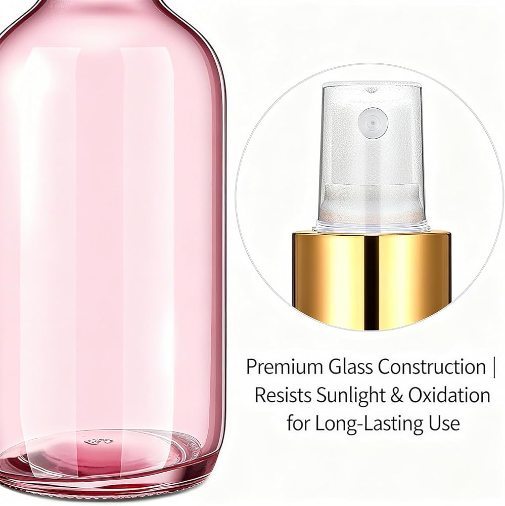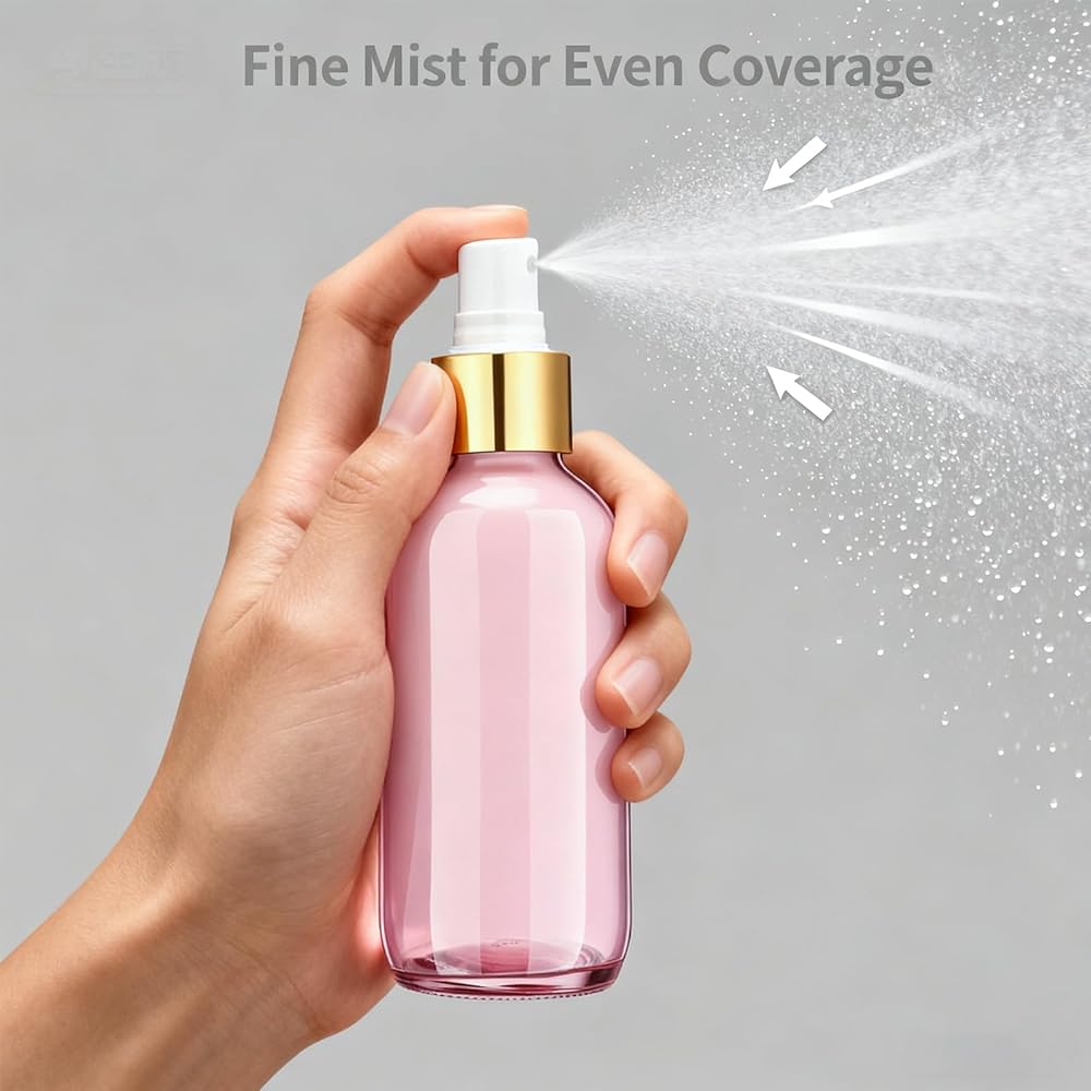 【2. Glass Spray Bottles with Fine Mist】 Made from durable glass with a fine mist sprayer, these small spray bottles deliver an even spray for liquids like essential oils, perfume, facial mist, and cleaning solutions without dripping or leaking.