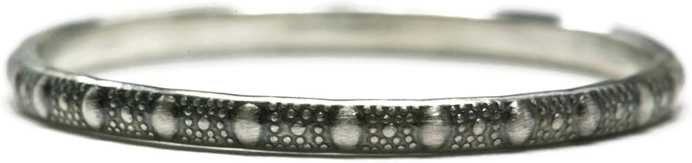 This handmade Beaded Stacking Ring is 1.6mm wide made of 925 Sterling Silver. Oxidized to a Vintage Silver finish. Reuseable ring sizer included.