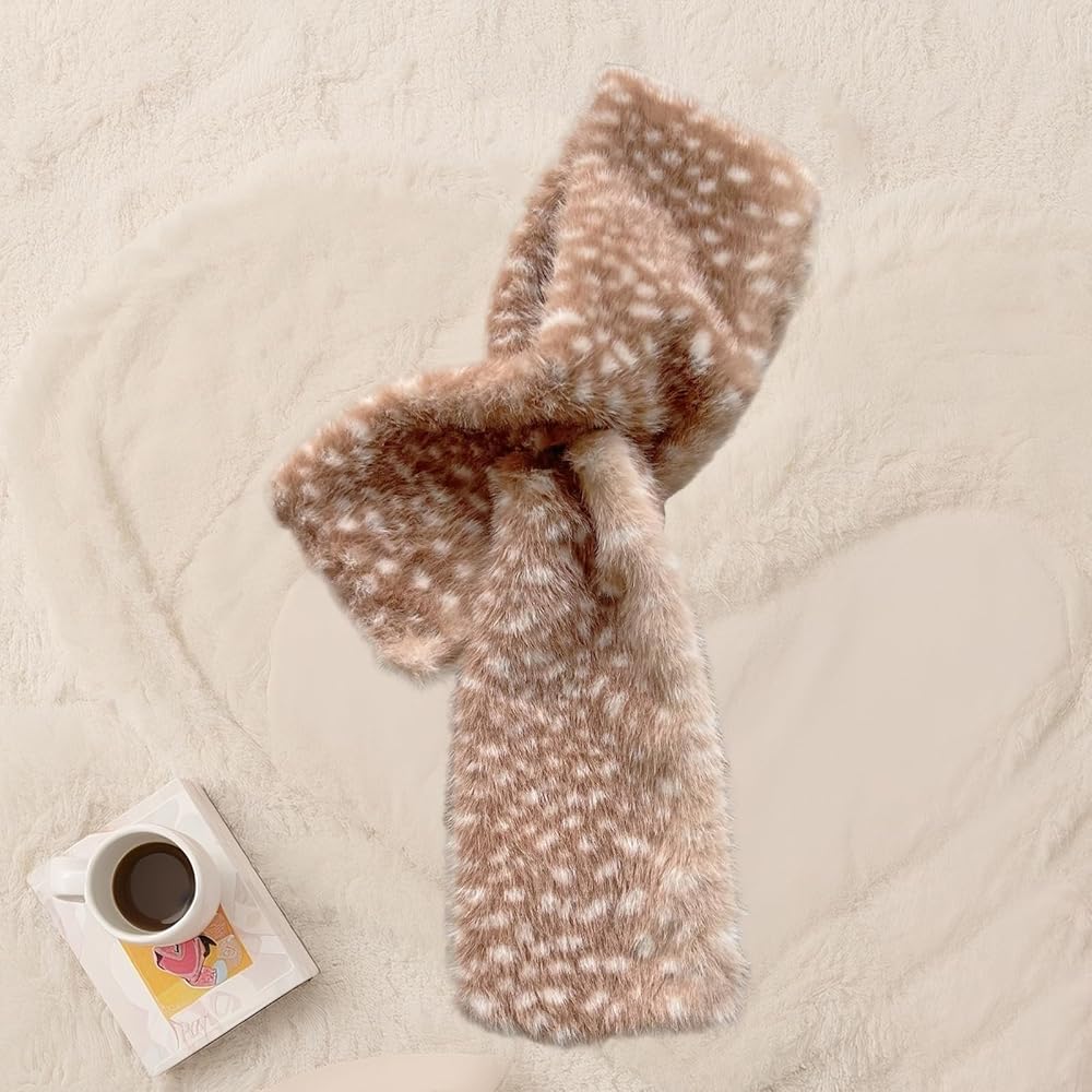 Christmas Elk Themed Design for Festive Holiday Vibe: This faux fur scarf wraps your look in Christmas charm—featuring warm, natural hues that mimic the soft fur of elk, tie into winter wildlife and Christmas cheer