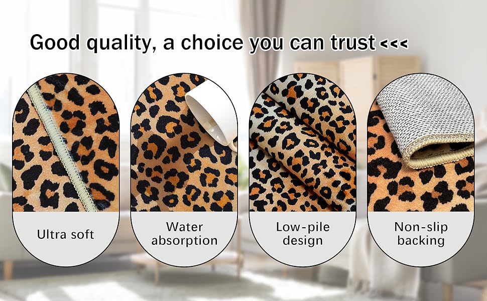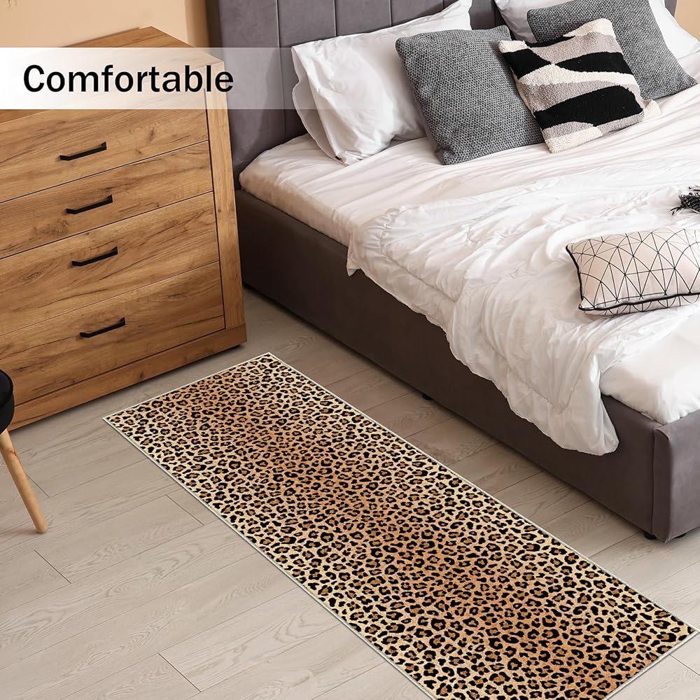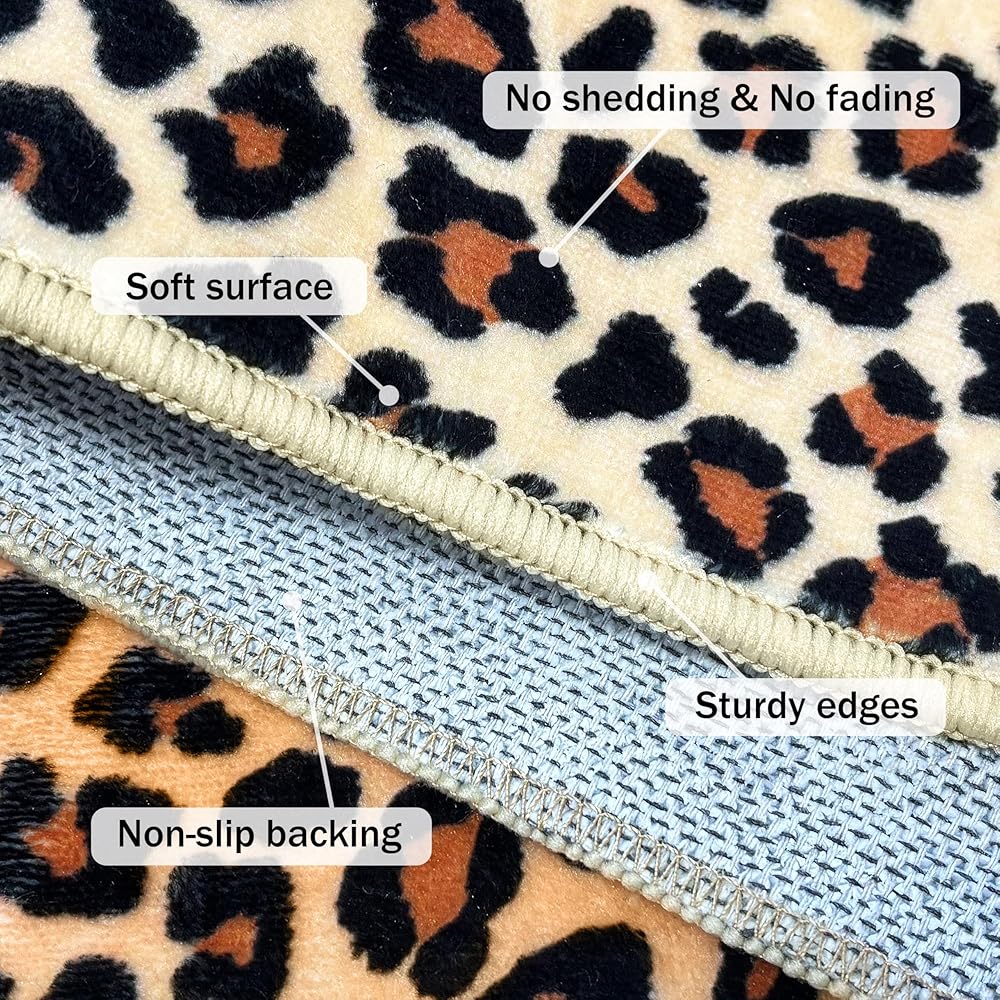 Ultra-Soft and Comfortable: Our leopard print kitchen runner rug is crafted from premium material. When you step on it, you'll feel as if you're walking on clouds.It keeps your feet warm, eliminating the cold and stiffness from the floor. This floor mat provides excellent support for long-standing periods, creating a warm and cozy relaxation space for your family. Moreover, its durable material ensures that the leopard rug maintains its color, shape, and softness even after multiple washes.