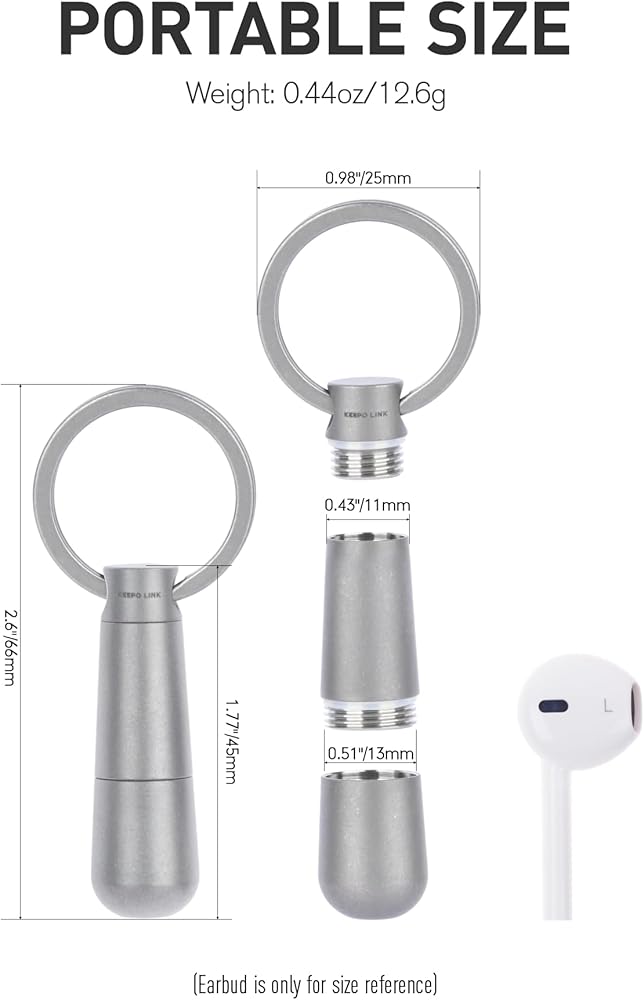 This keychain pill holderis the perfect companion for travelers, outdoor enthusiasts, EDC advocates, and anyone focused on their health. It's the all-in-one convenience you need for true peace of mind. Order yours today and experience the difference that superior design and materials make.