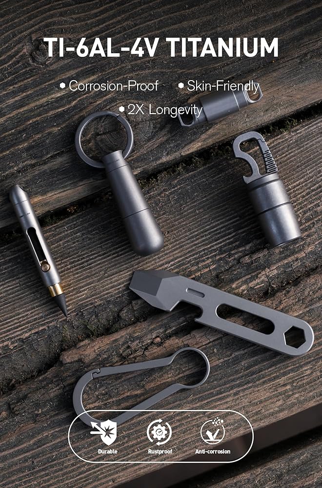 • 𝐓𝐈𝐓𝐀𝐍𝐈𝐔𝐌-𝐒𝐀𝐅𝐄​: Crafted from aerospace-grade titanium alloy, this medicine pill organizer guaranteeing no chemical interaction with medicine, ideal for sensitive drugs like nitroglycerin. Superior to plastic or aluminum, it is also ultralight, rust-proof, and built for a lifetime of use