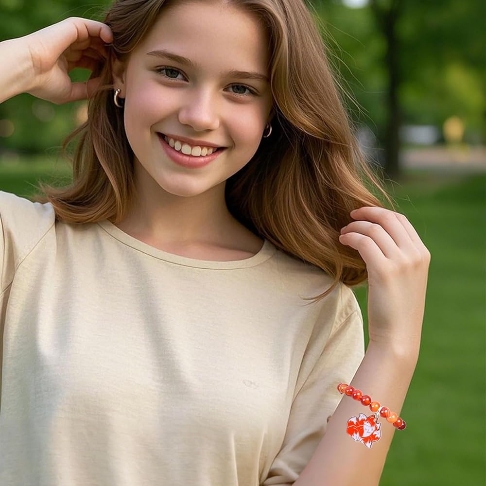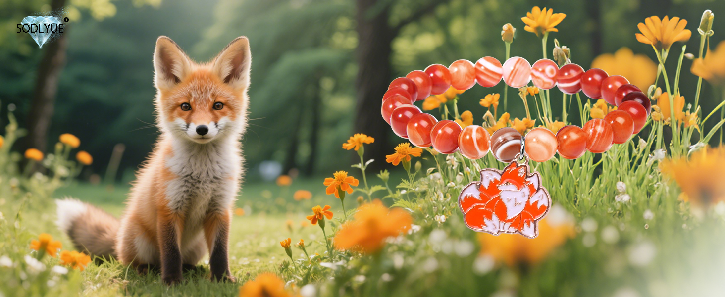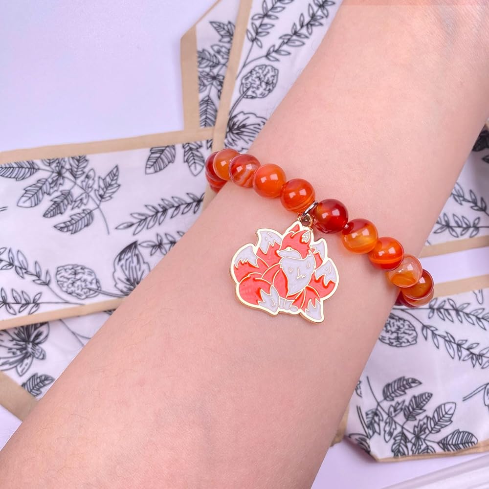 Fox Charm Bracelet: Vibrant orange-red 8mm agate beads, symbolizing vitality, courage and fortune. A sleek, meaningful accessory for fox lovers and nature enthusiasts. Let this bracelet bring the receiver energy and good luck.