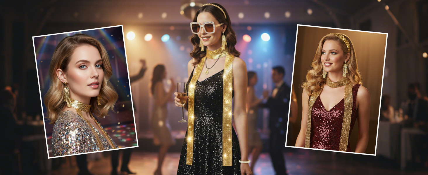 Unique Details: Features sparkling sequins, shiny disco balls, and vintage designs, capturing the essence of 70s disco fashion—ideal for standing out at costume parties, festivals, or themed photo shoots
