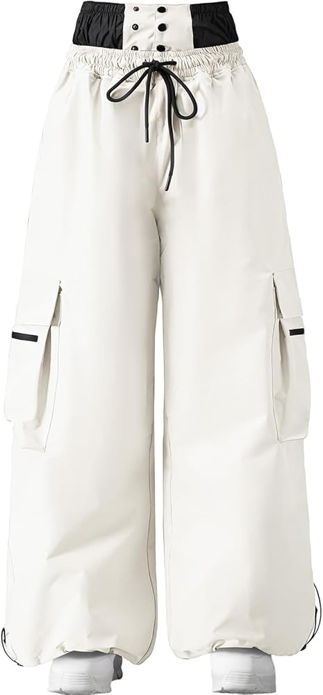 Comfortable Relaxed Fit: Baggy snowboard pants, stretch waistband and drawstring ensure a perfect fit for all body types. The loose silhouette allows for easy movement and layering, making it ideal for skiing, snowboarding, or everyday winter wear